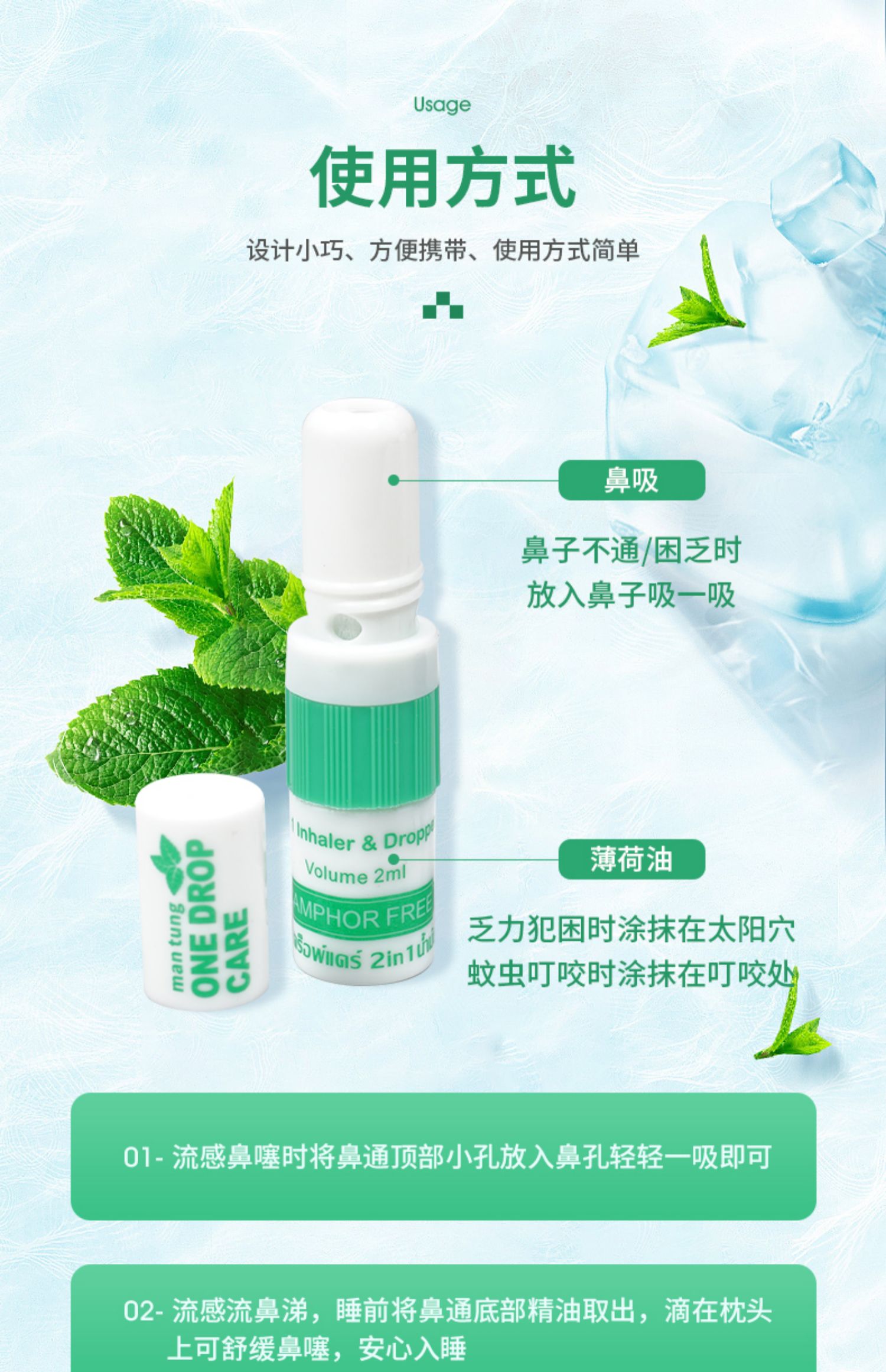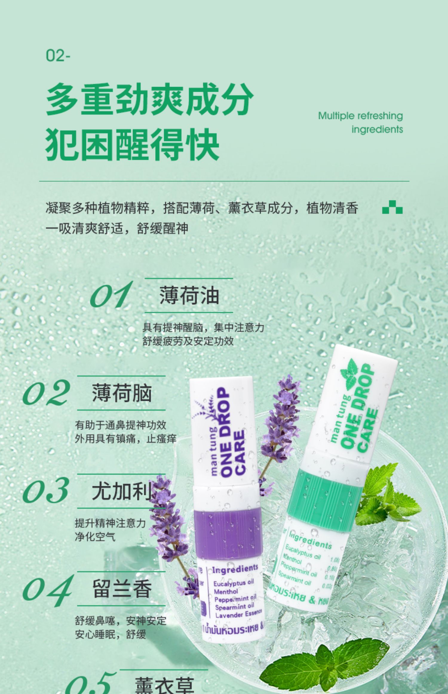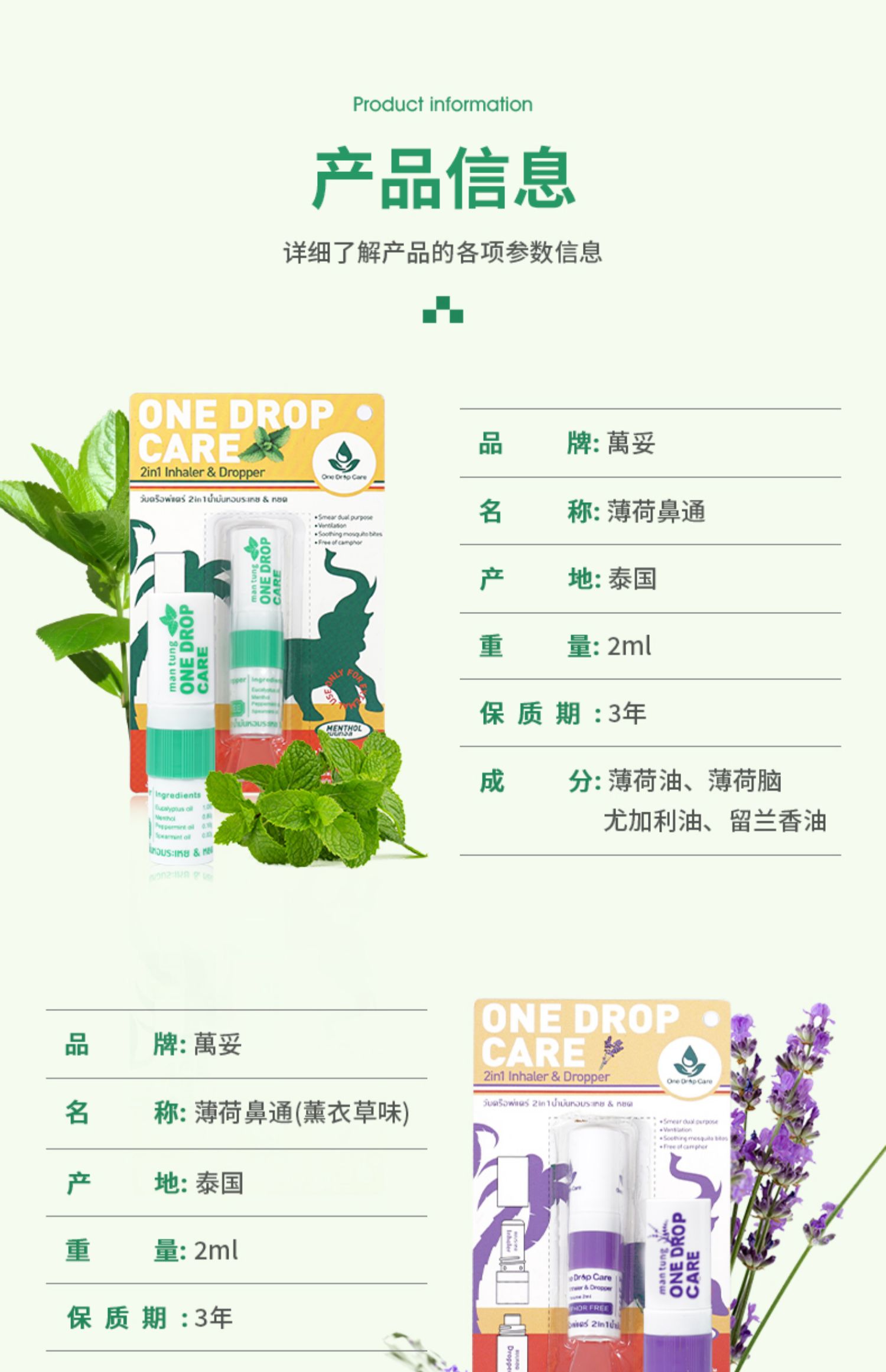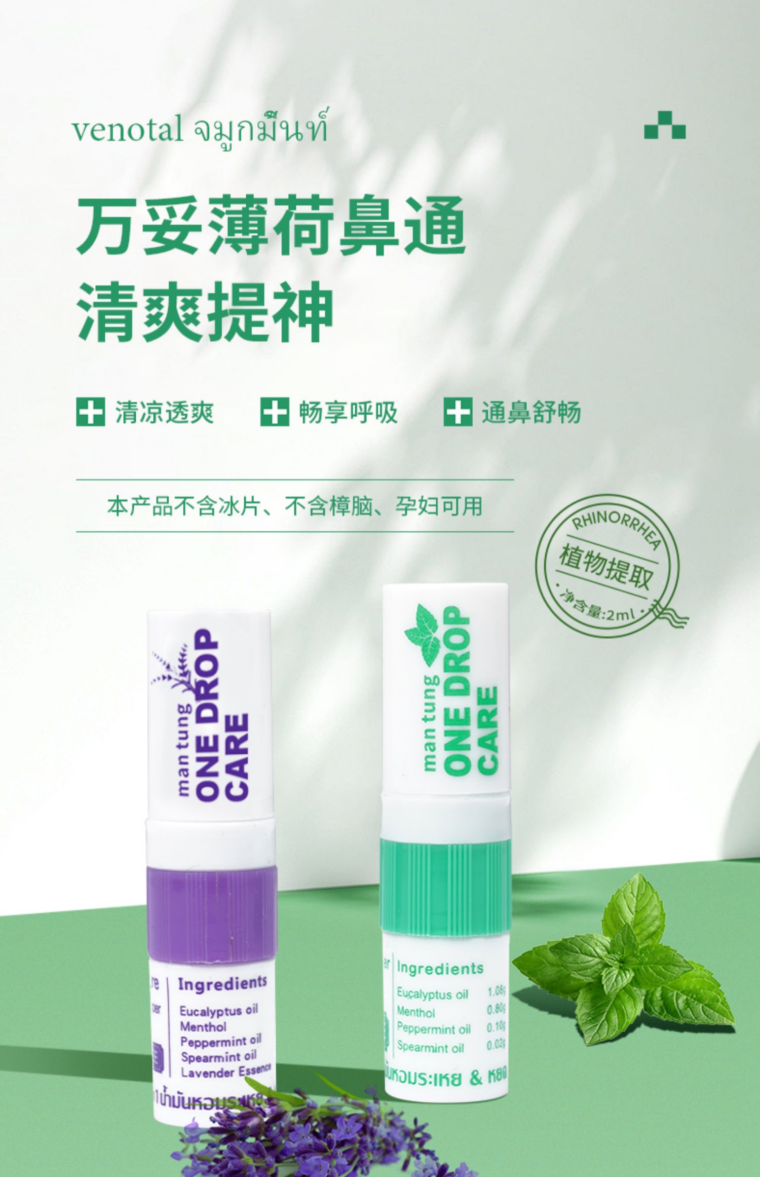 万妥OneDropCare二合一薰衣草型鼻通精油棒2ml/盒