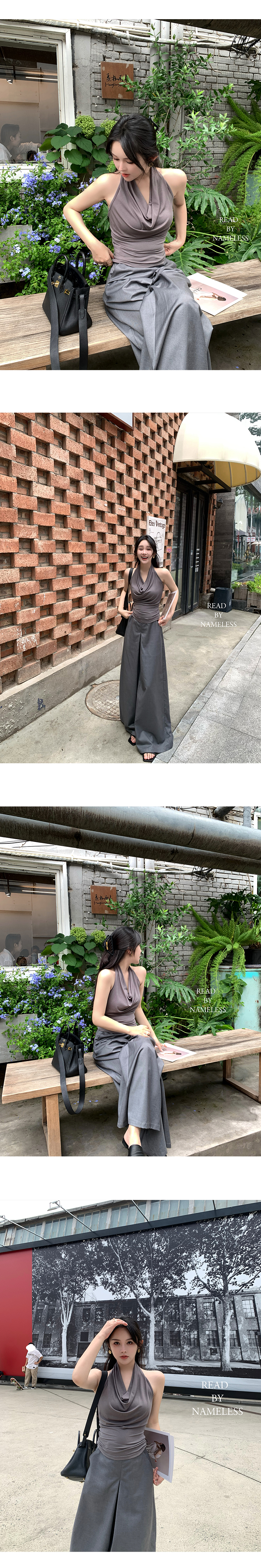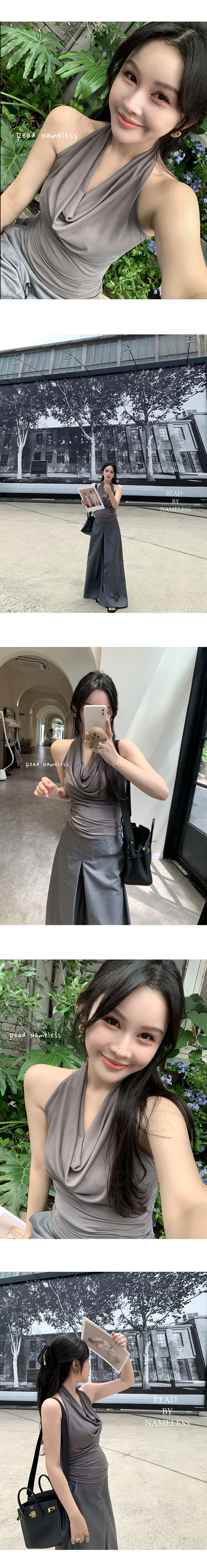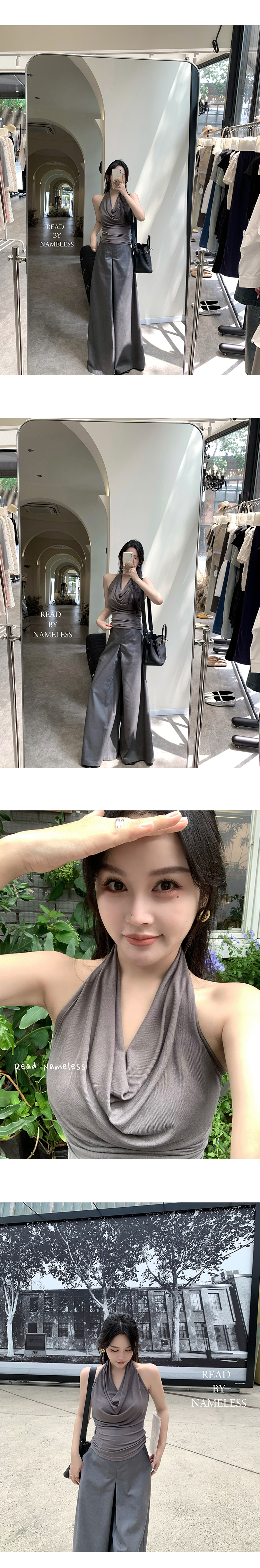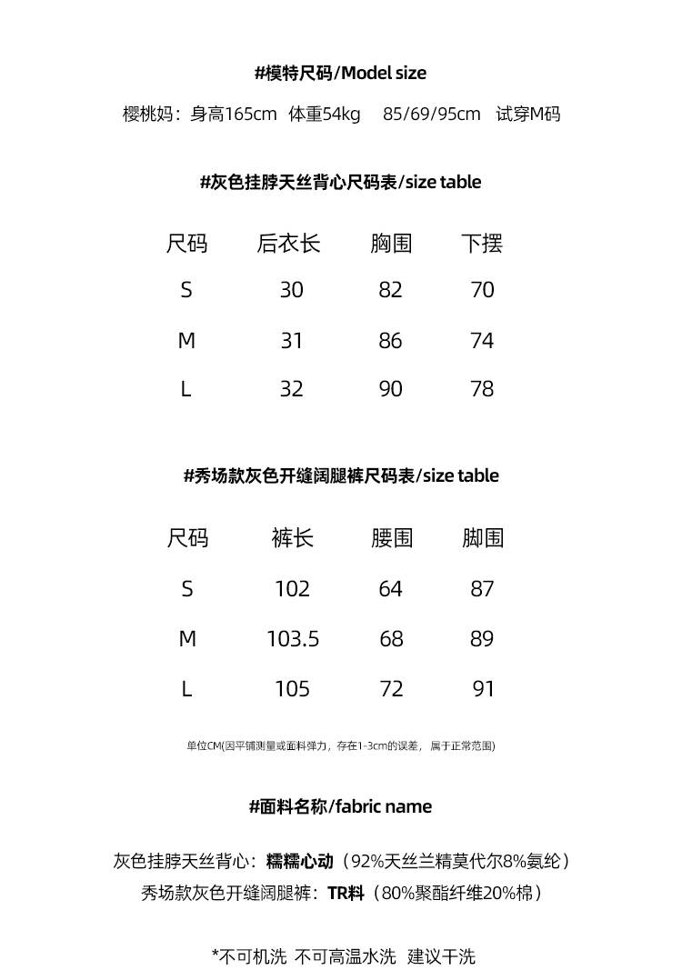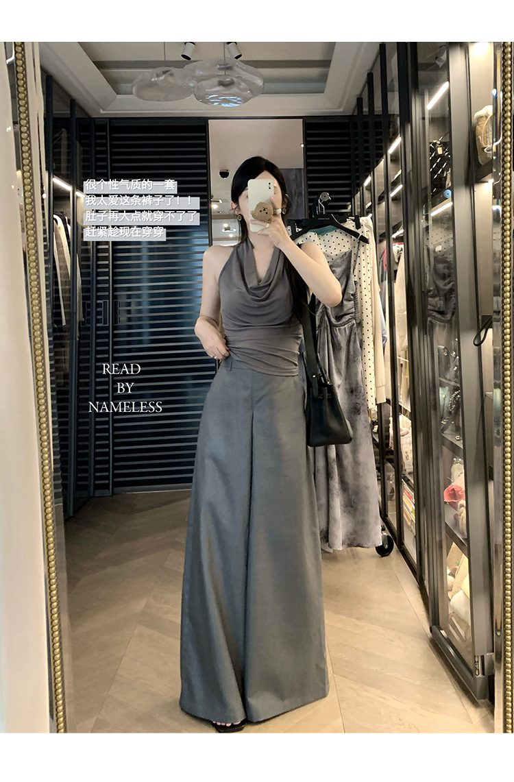Read Nameless /灰色挂脖天丝背心+秀场款灰色开缝阔腿裤