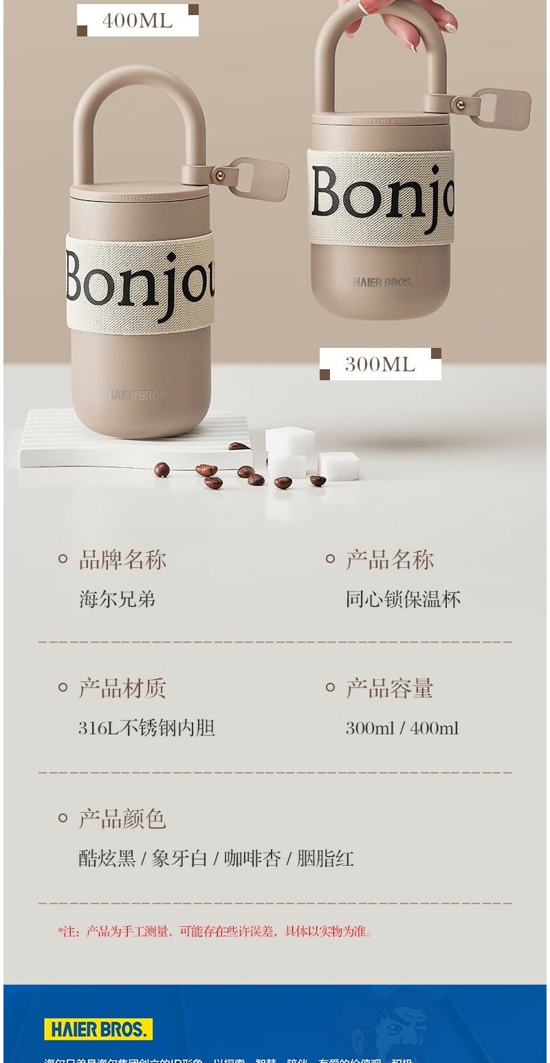 海尔兄弟 保温杯 大容量水广口杯 300ml-400ml