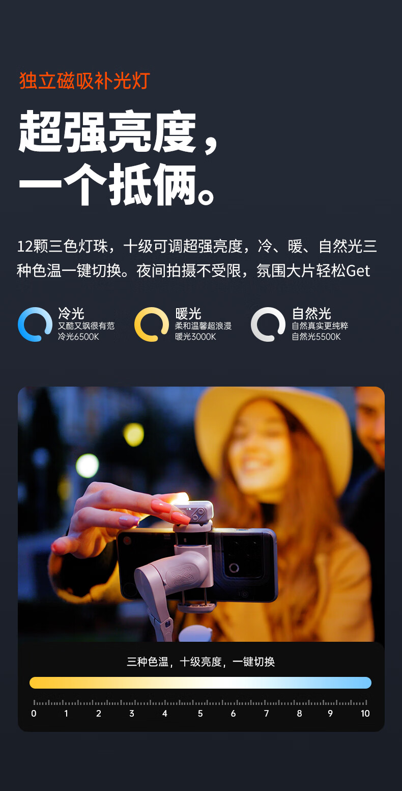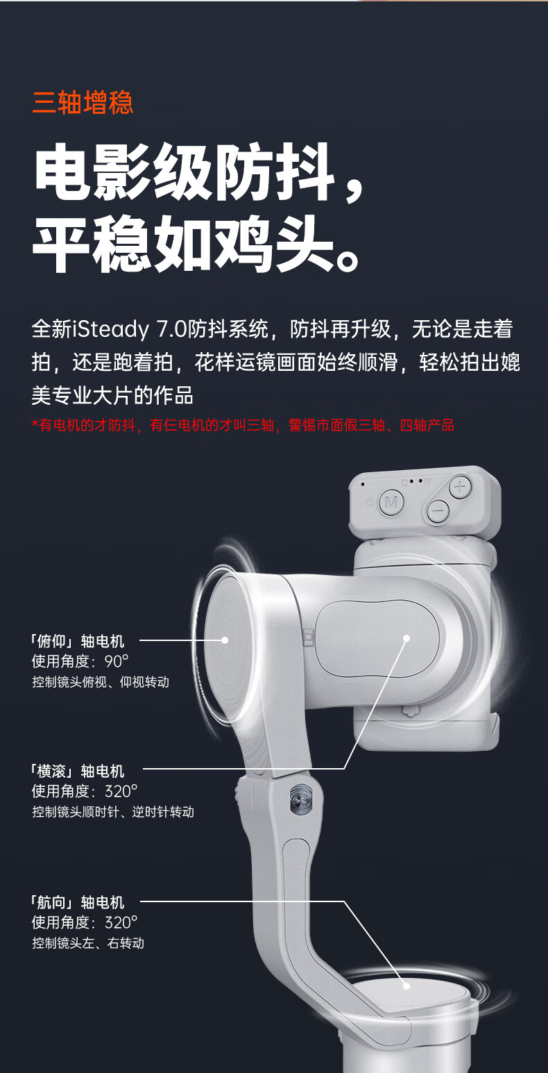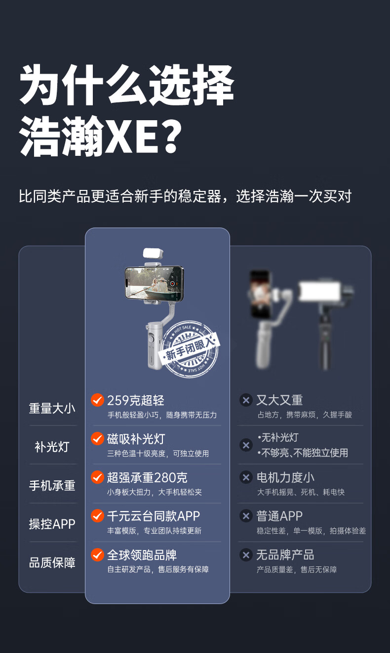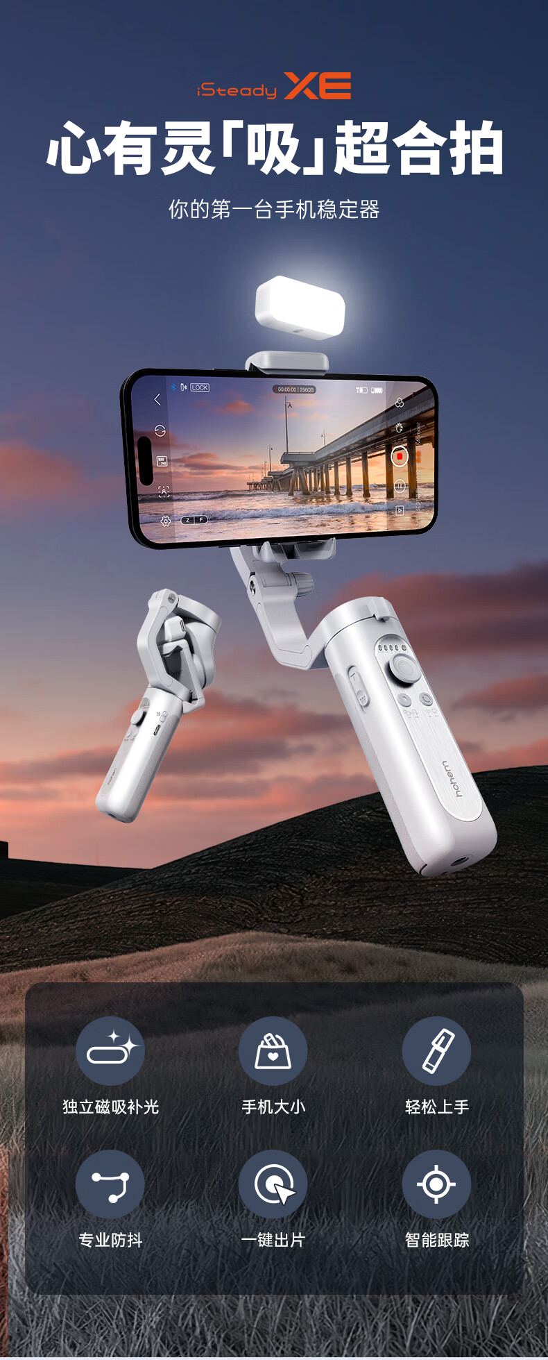 浩瀚卓越 iSteady XE Kit 磁吸补光三轴手机稳定器