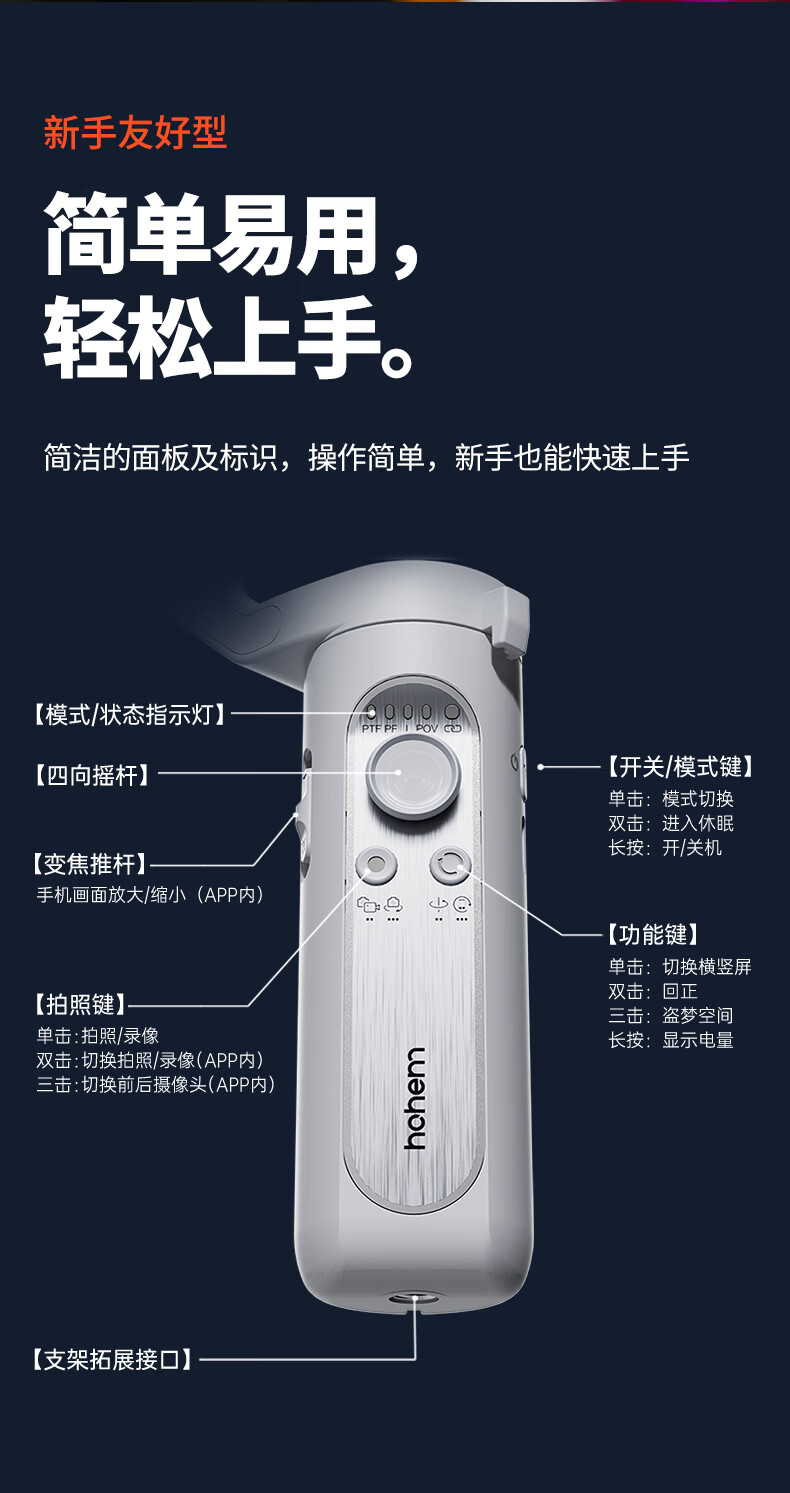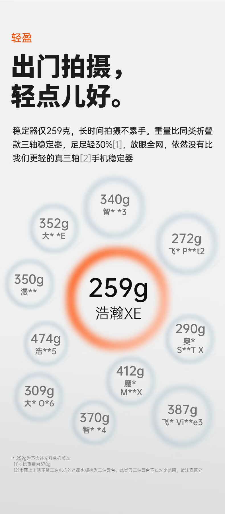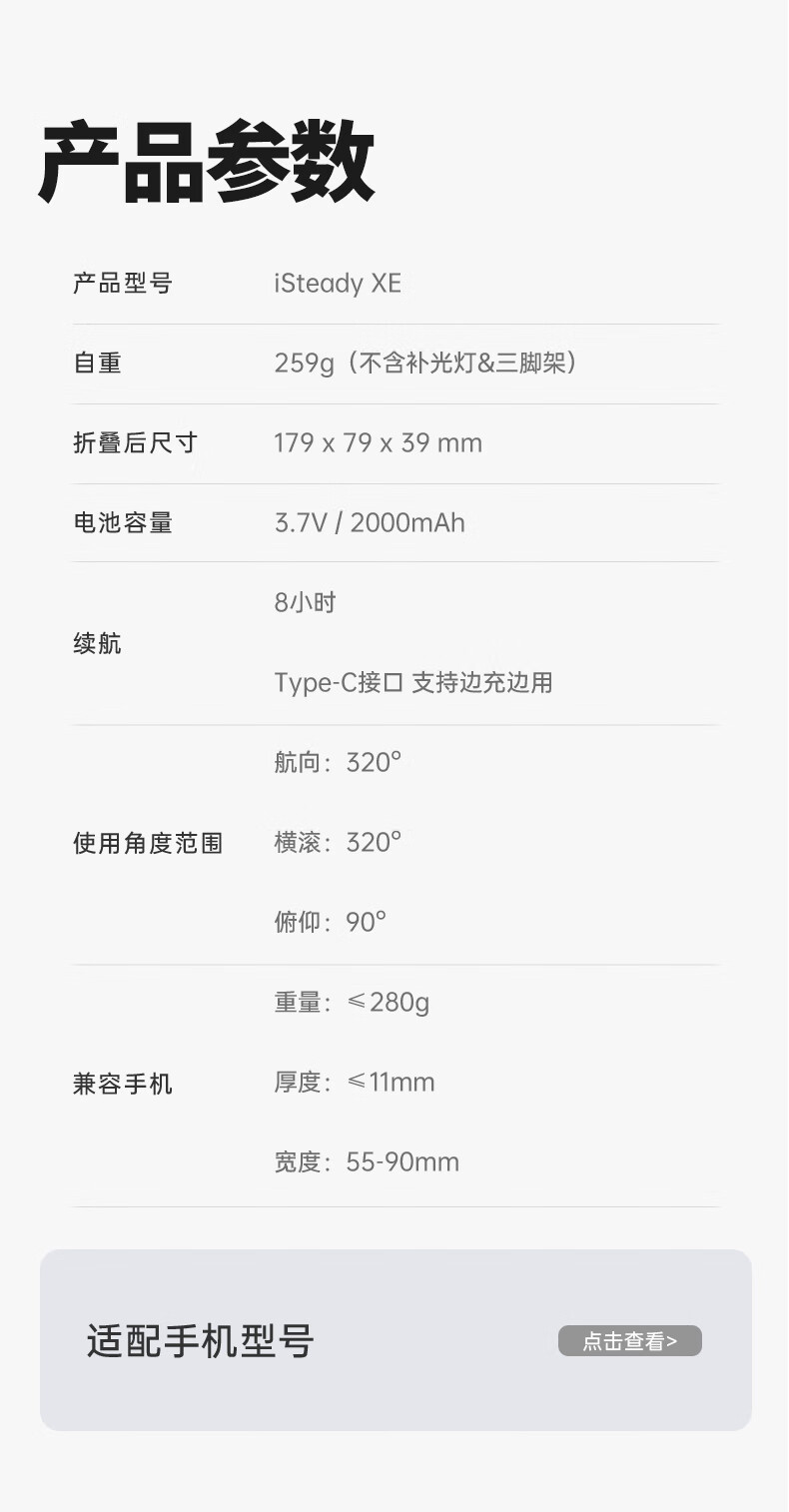 浩瀚卓越 iSteady XE Kit 磁吸补光三轴手机稳定器
