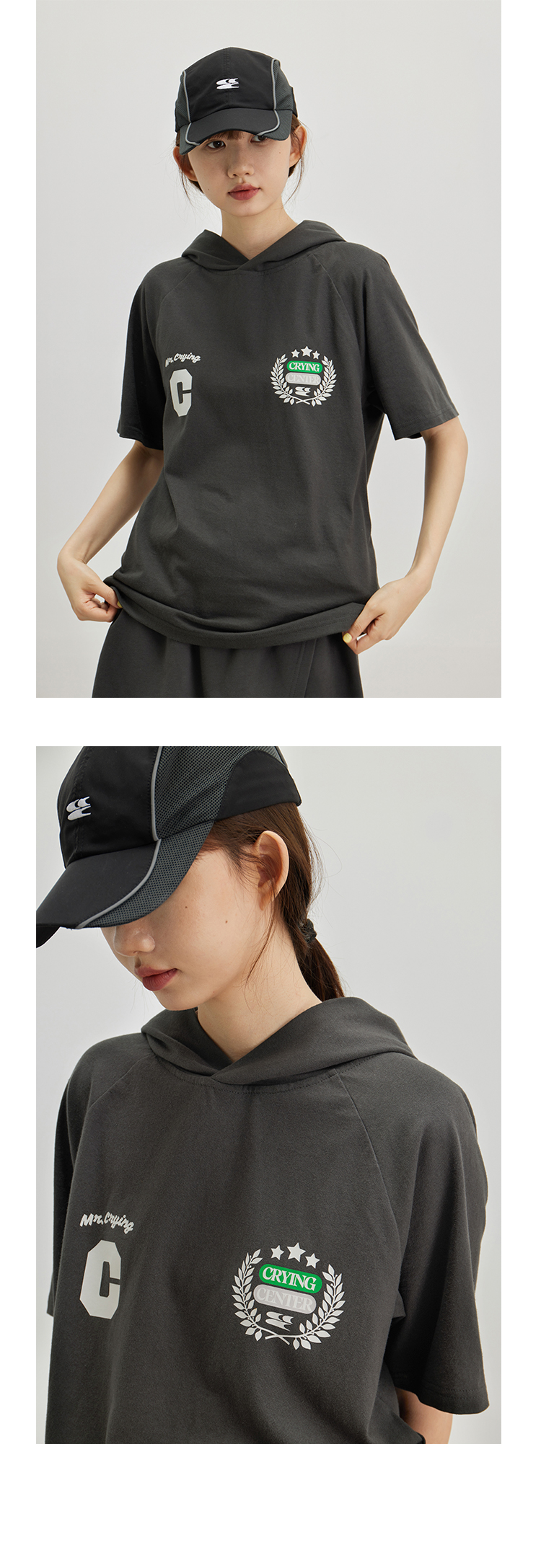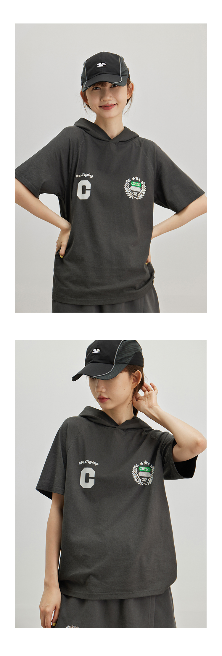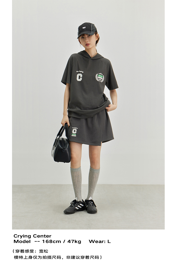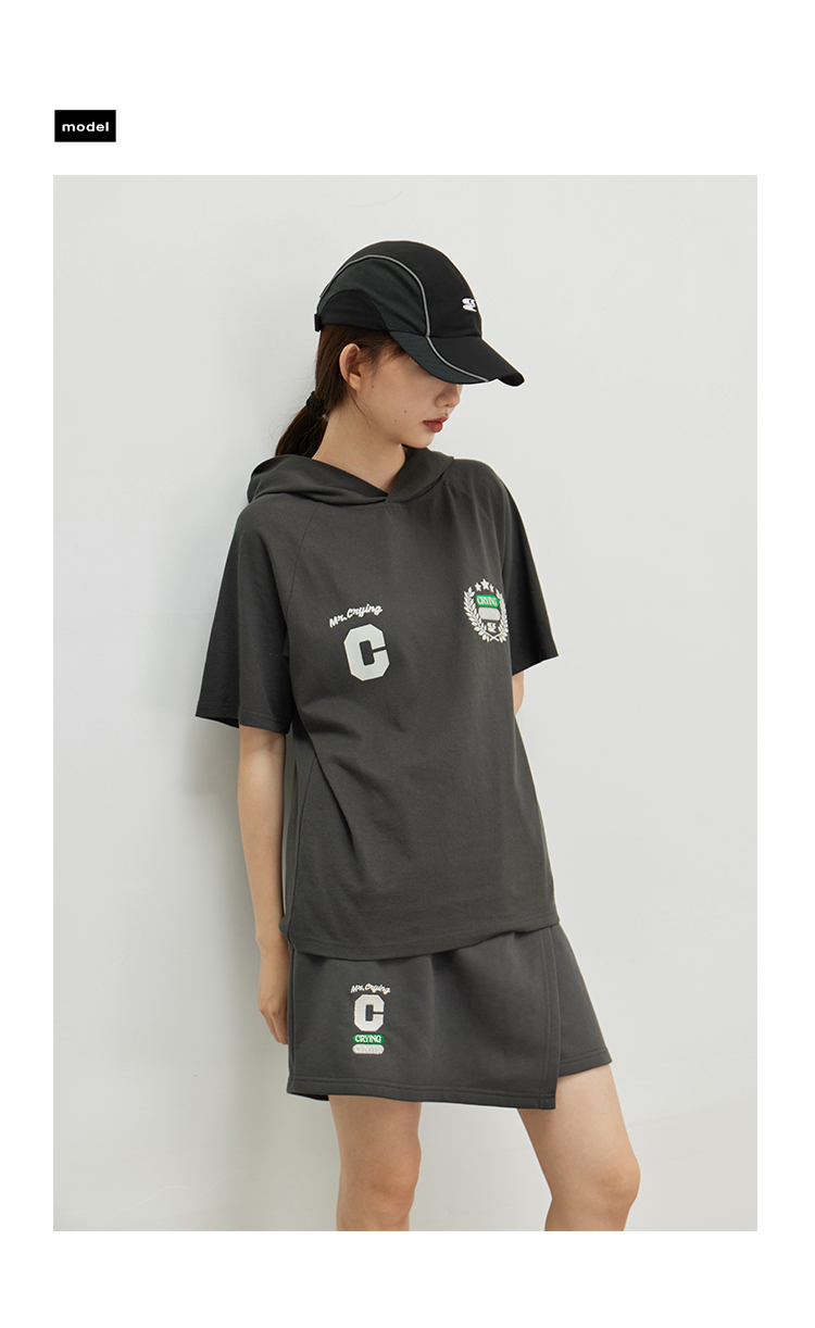 CryingCenter 复古学院带帽休闲插肩网球运动短袖