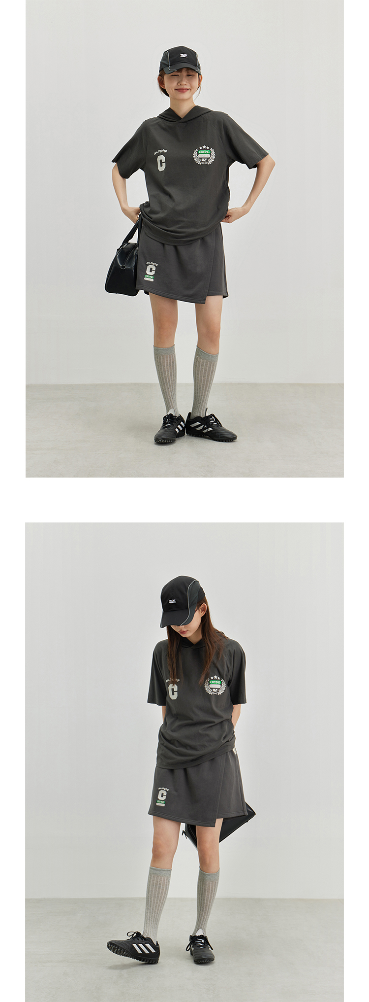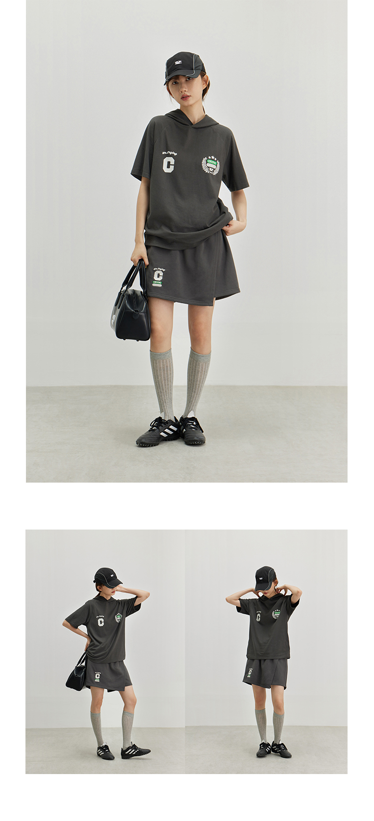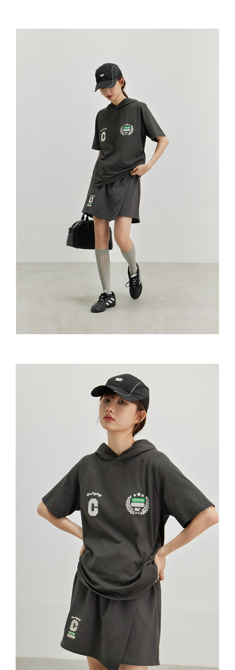 CryingCenter 复古学院带帽休闲插肩网球运动短袖