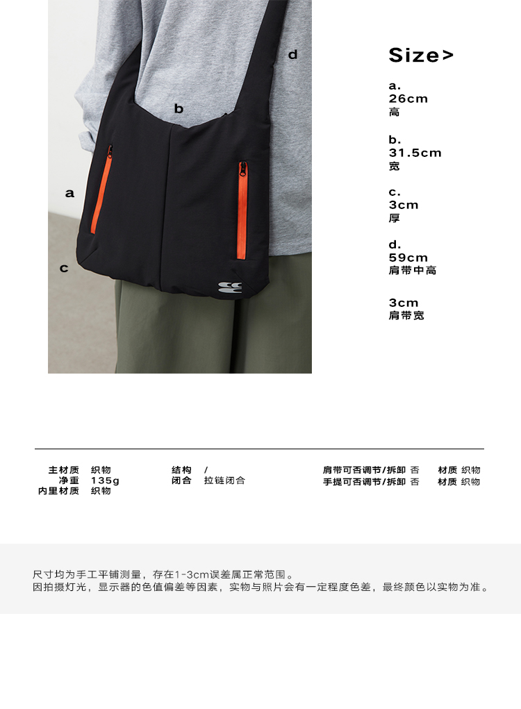CryingCenter运动亮橙色夹棉斜跨包百搭大容量cleanfit情侣款
