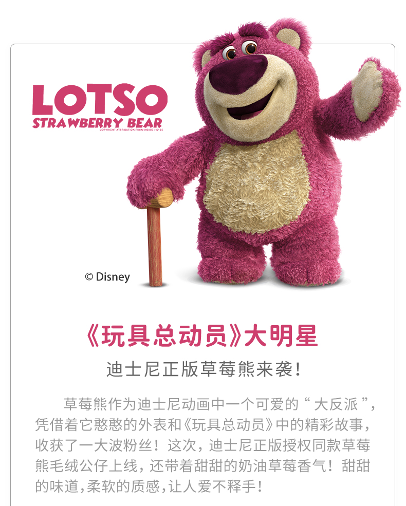 积分免费兑:迪士尼(Disney)草莓熊(50CM)毛绒玩具公仔玩偶七夕情人节礼物送女朋友抱枕女生生日礼物