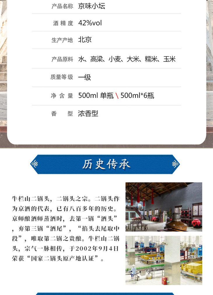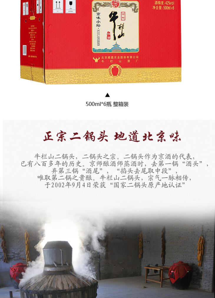 【推荐】百年牛栏山 42度京味小坛 红瓶 婚庆 浓香型白酒 500ml 500ml*6瓶整箱装