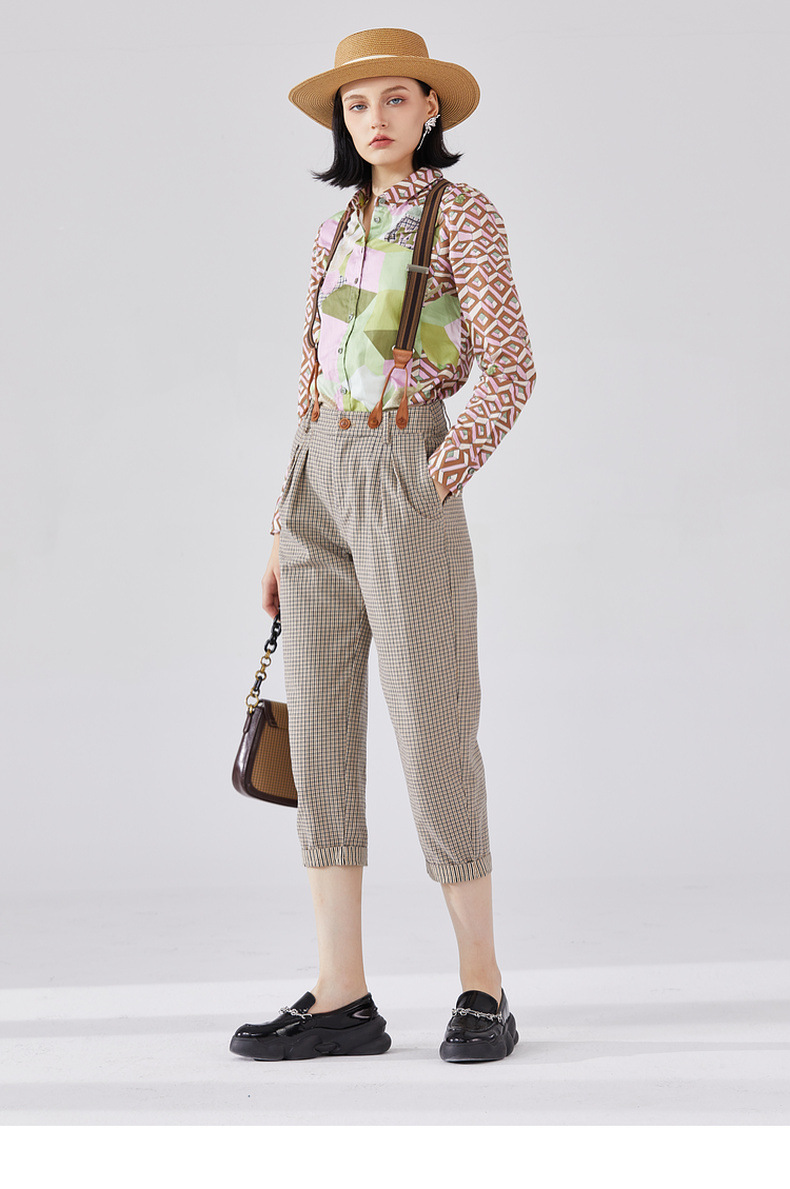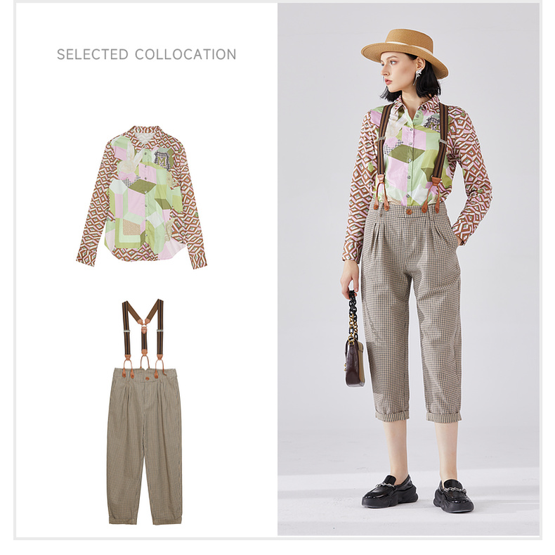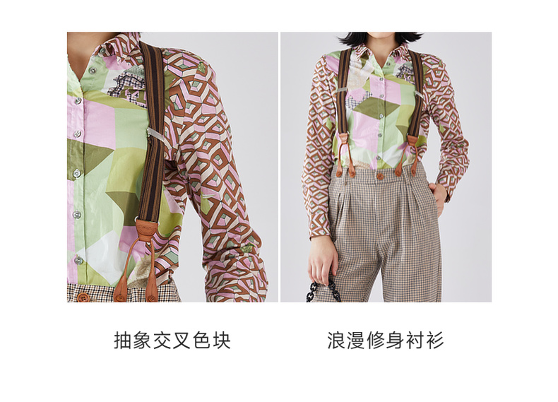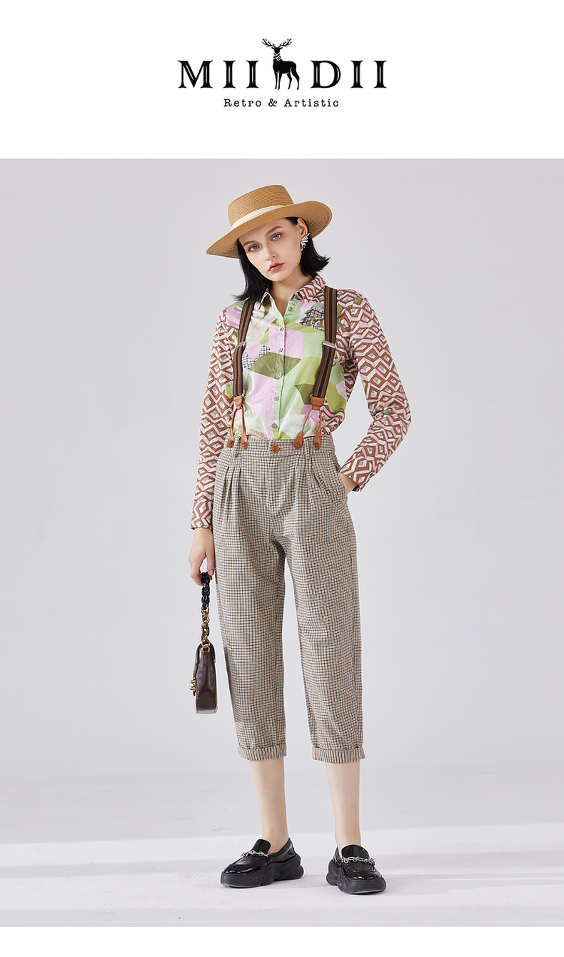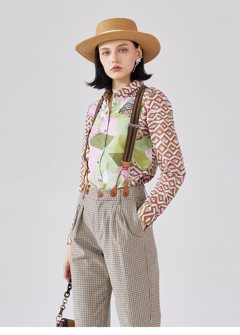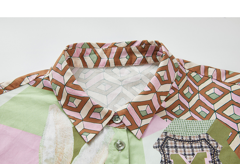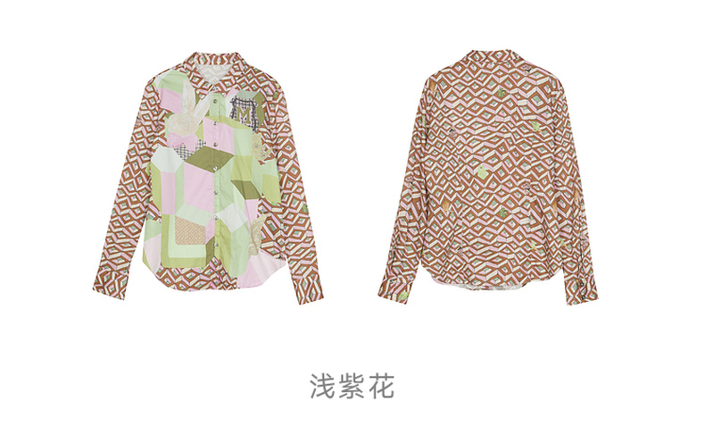 谜底纯棉花衬衫长袖女2024春复古主题原创印花宽松衬衣241MC0049