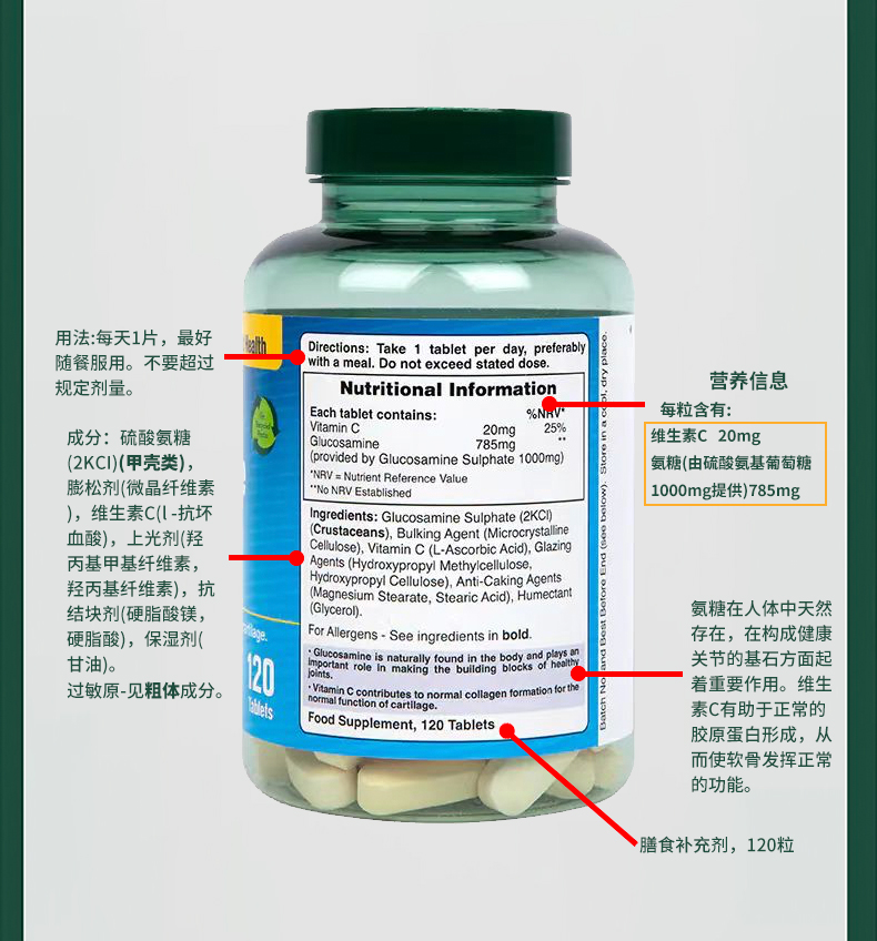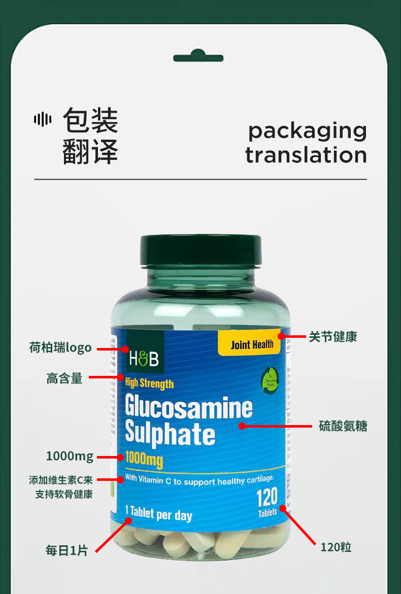 HB 荷柏瑞 氨糖维骨力1000mg120粒/瓶