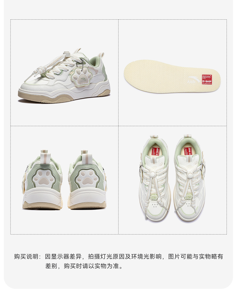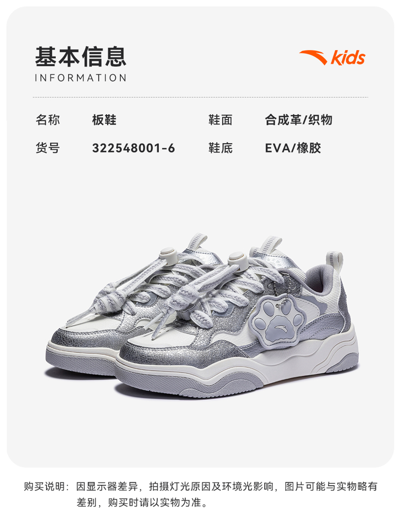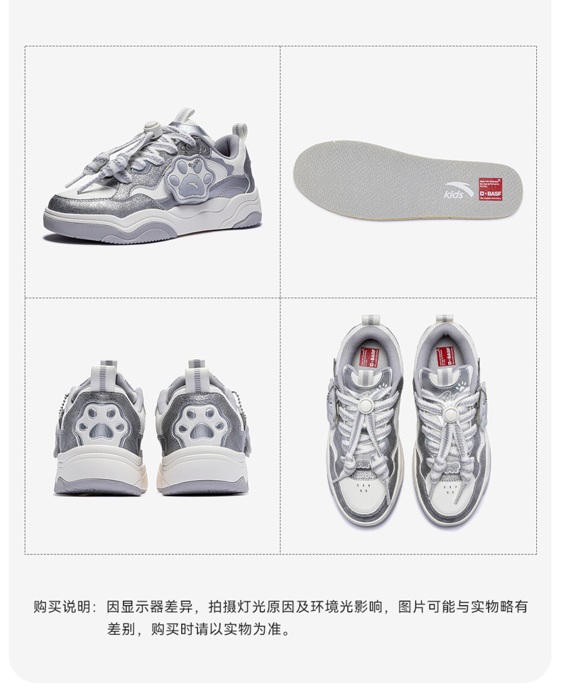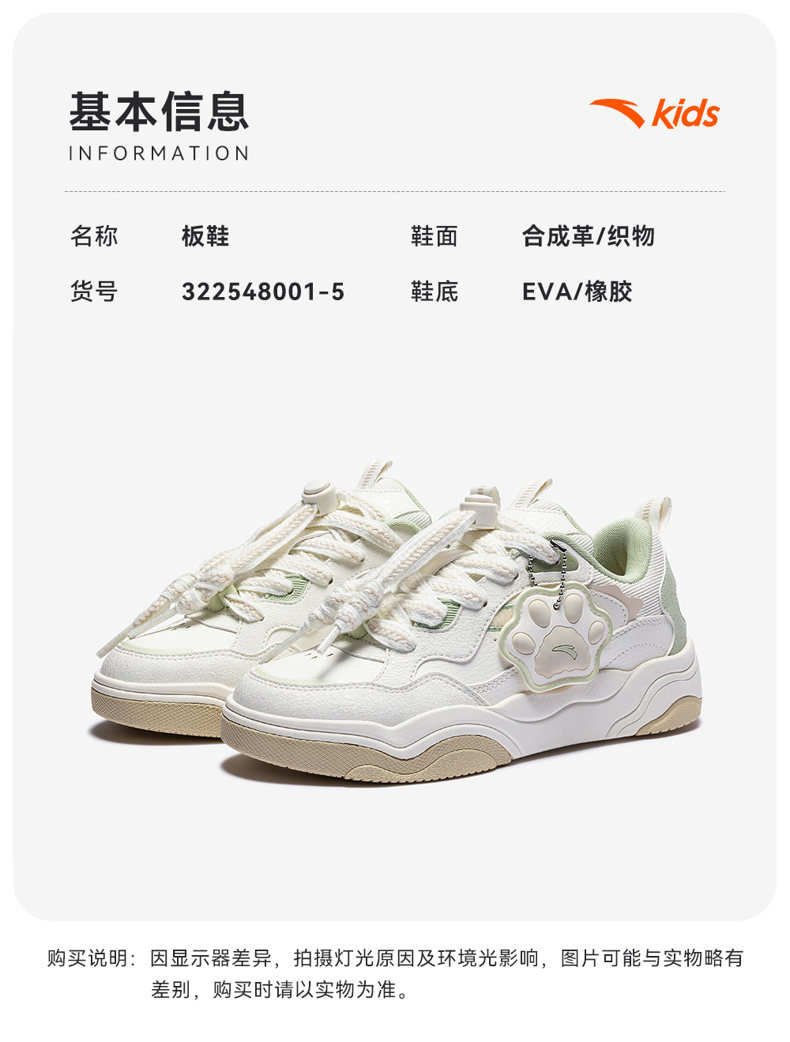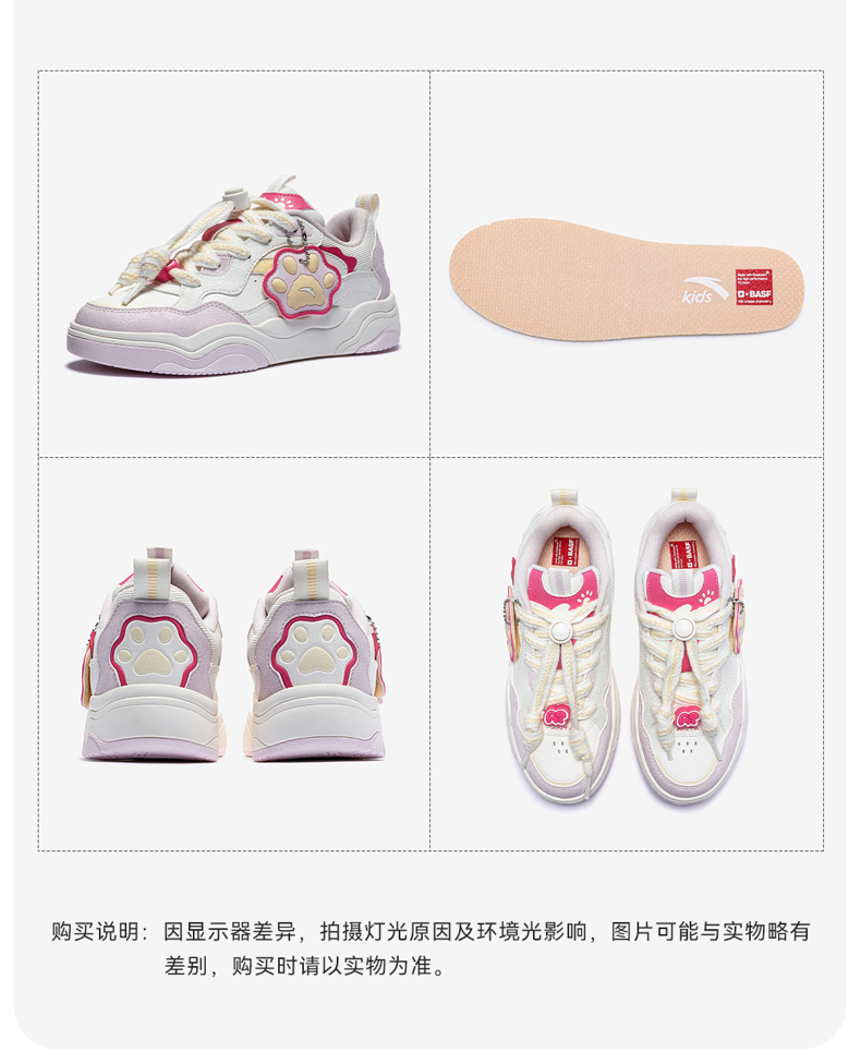 萌宠鞋丨安踏儿童运动鞋女童板鞋2025秋冬低帮耐磨滑板鞋小白鞋322548001