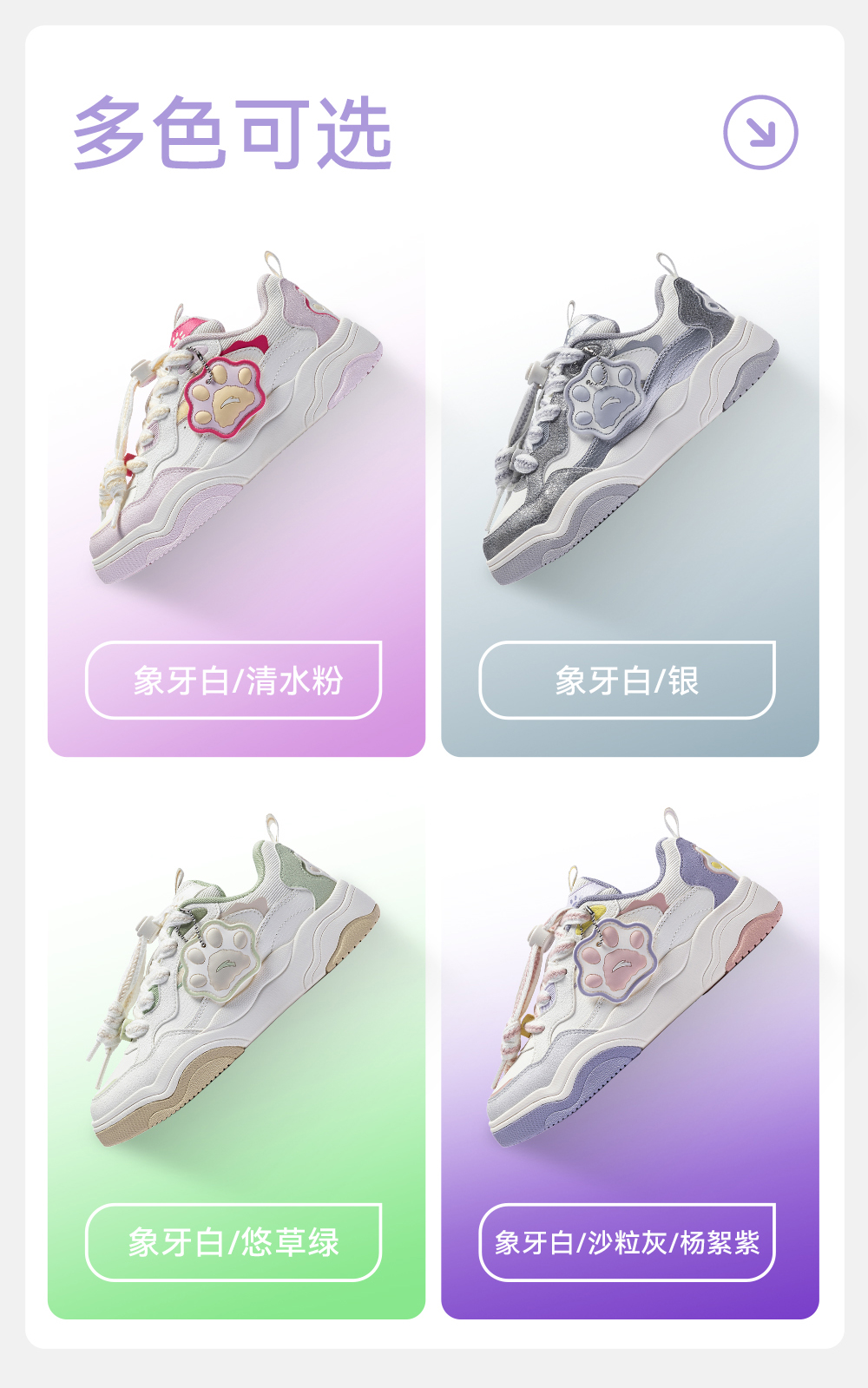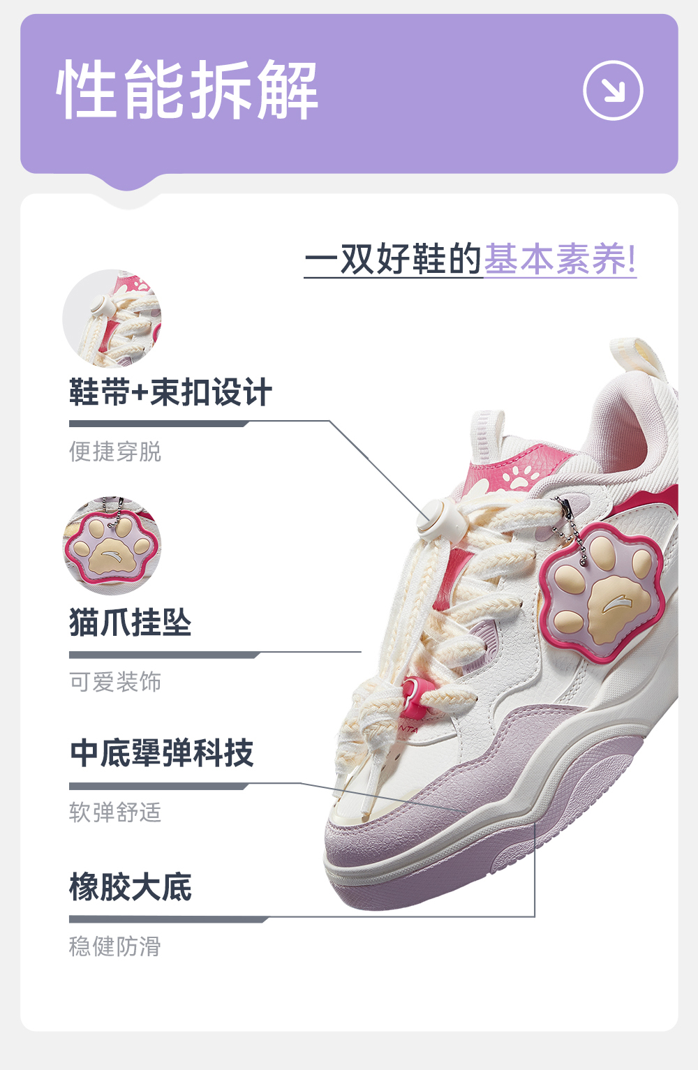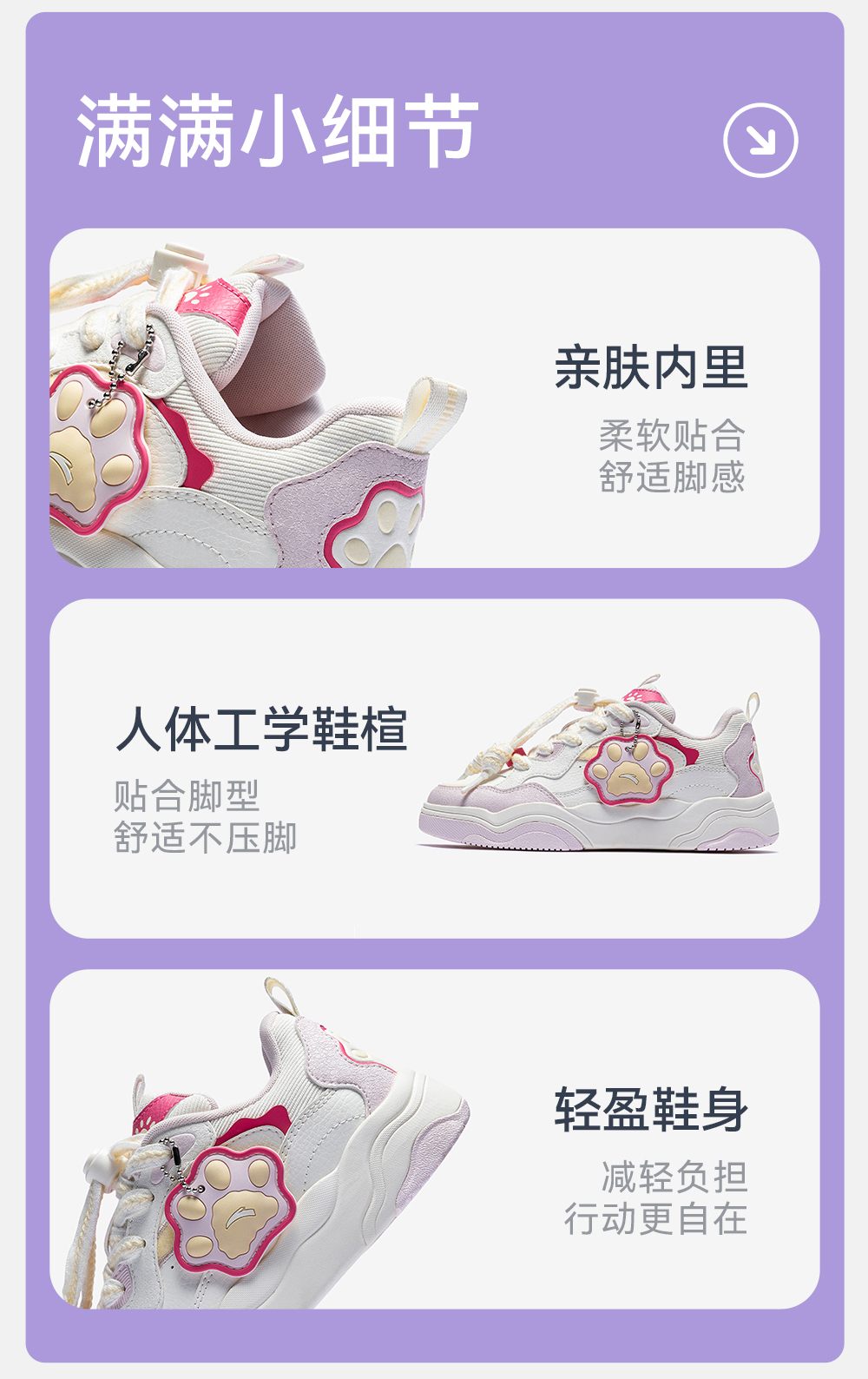 萌宠鞋丨安踏儿童运动鞋女童板鞋2025秋冬低帮耐磨滑板鞋小白鞋322548001