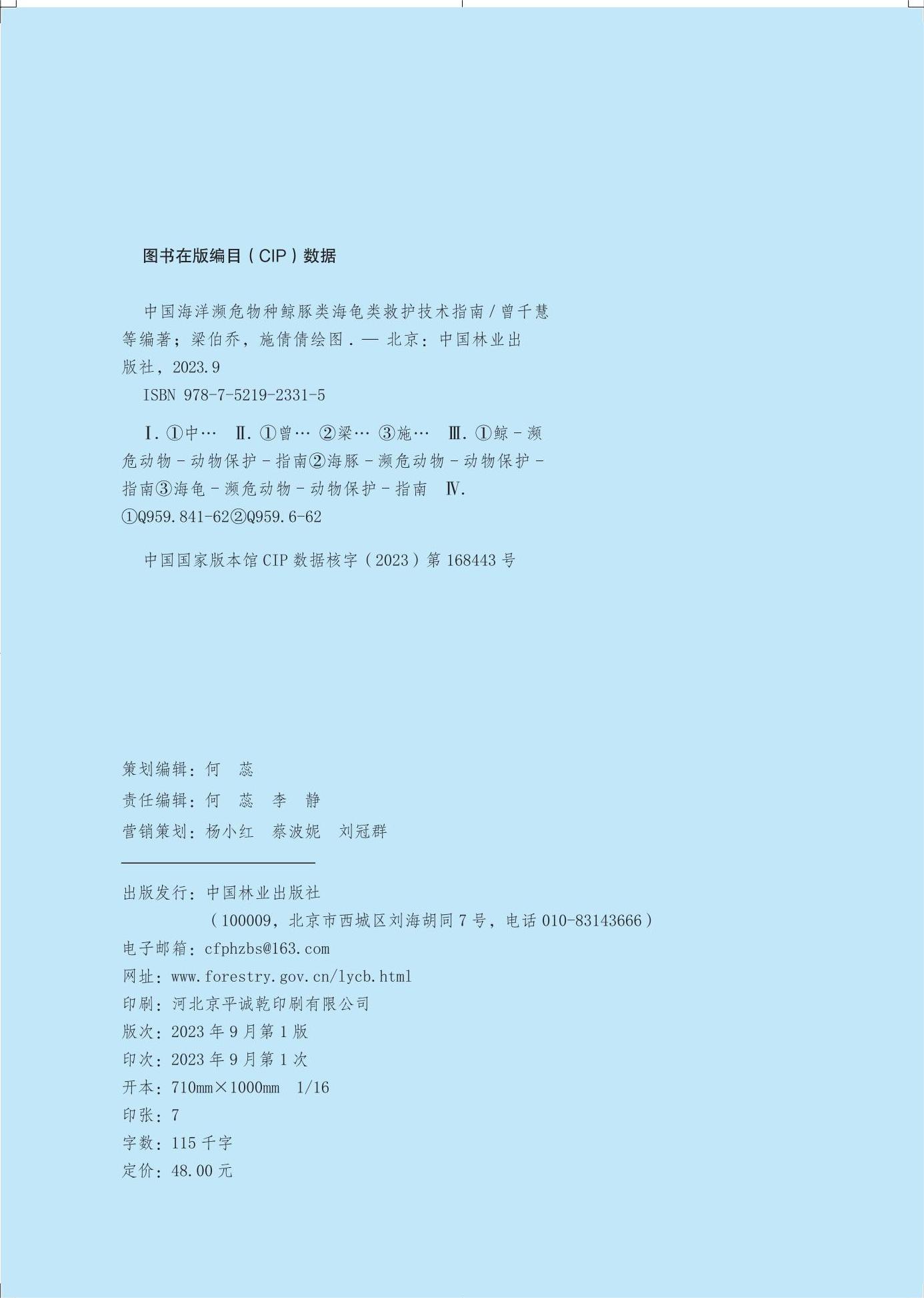 海洋科普图书2331《中国海洋濒危物种鲸豚类海龟类救护技术指南》
