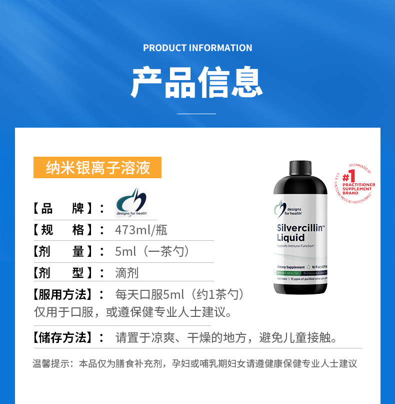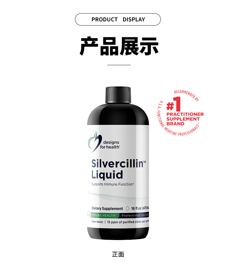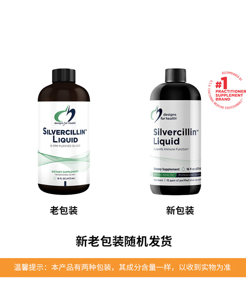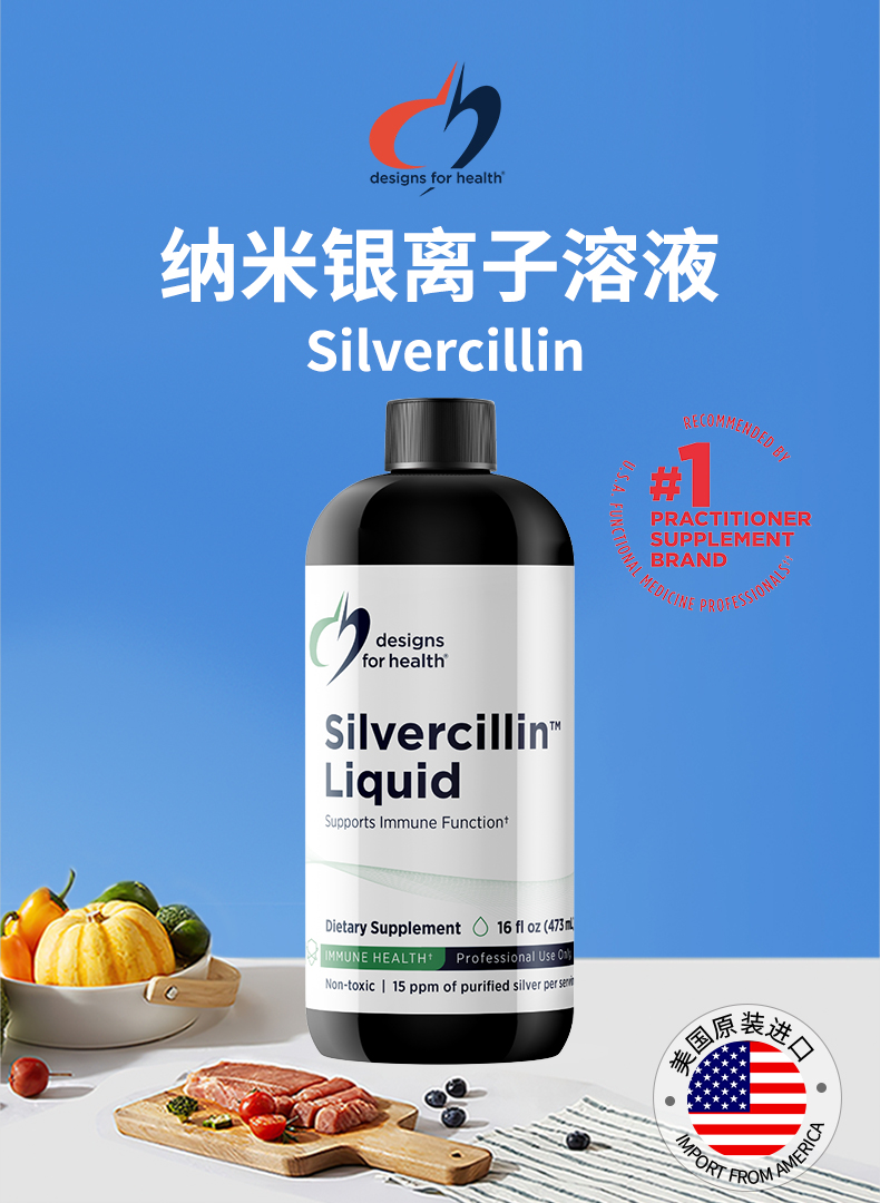 【效期至28年5月】纳米银离子溶液 Designs for health Silvercillin™ Liquid 473mL/瓶