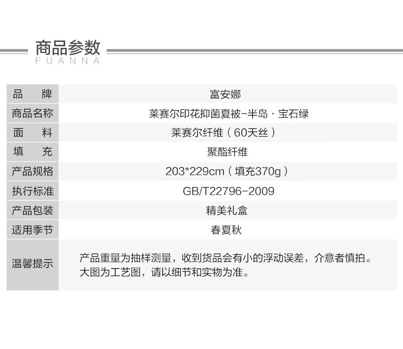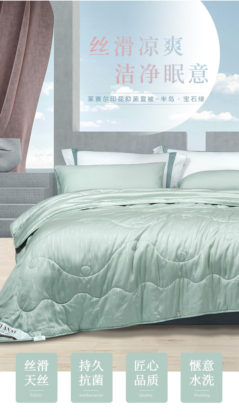 富安娜 莱赛尔印花抑菌夏被-半岛·宝石绿