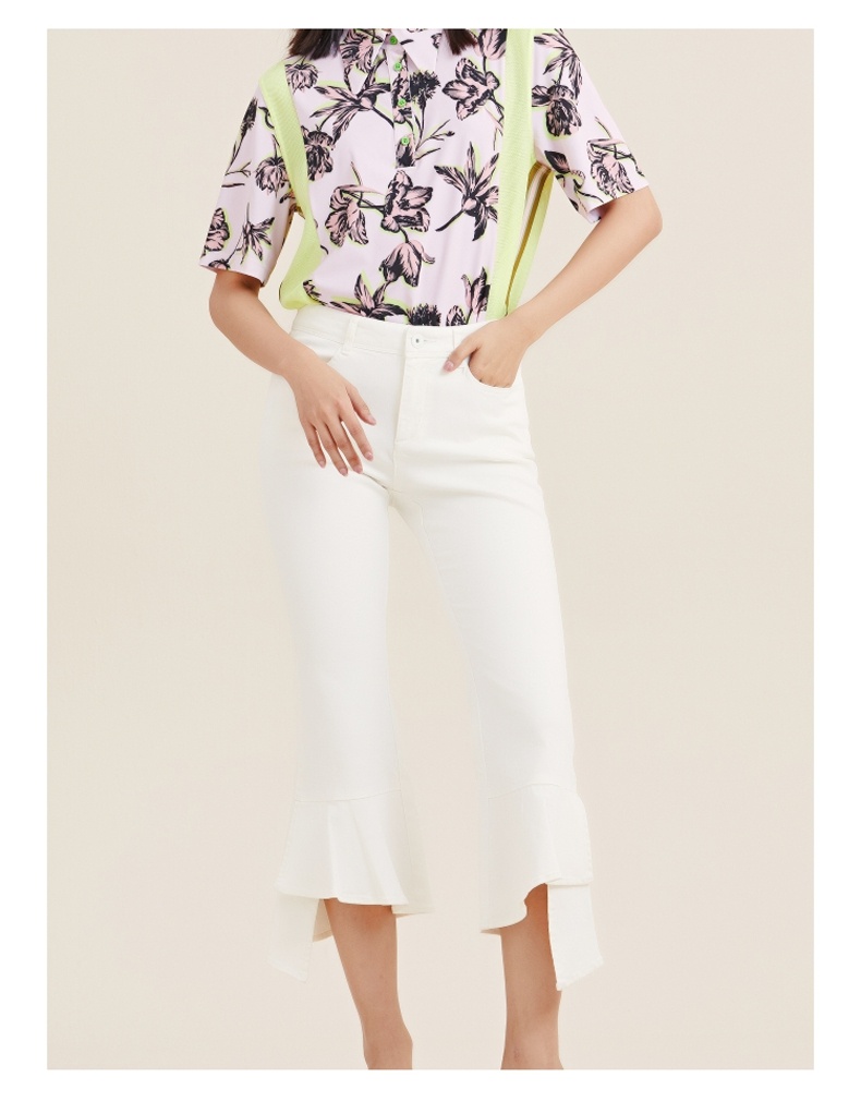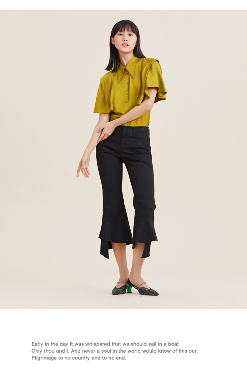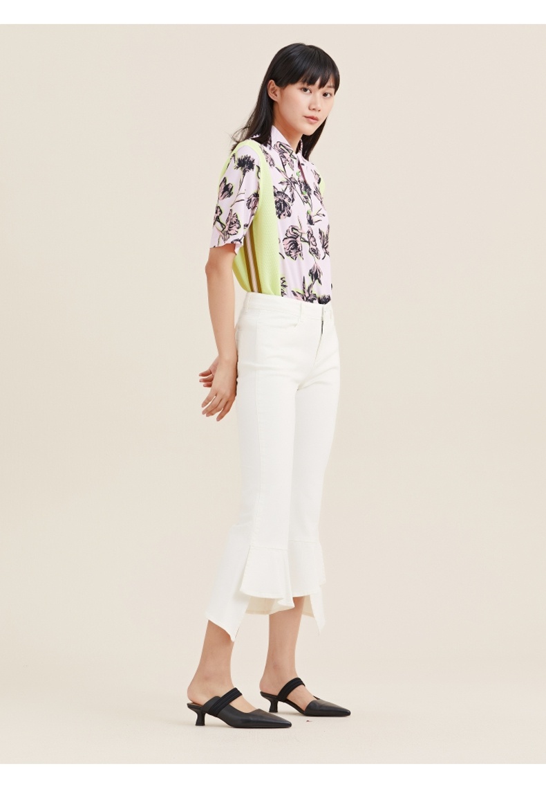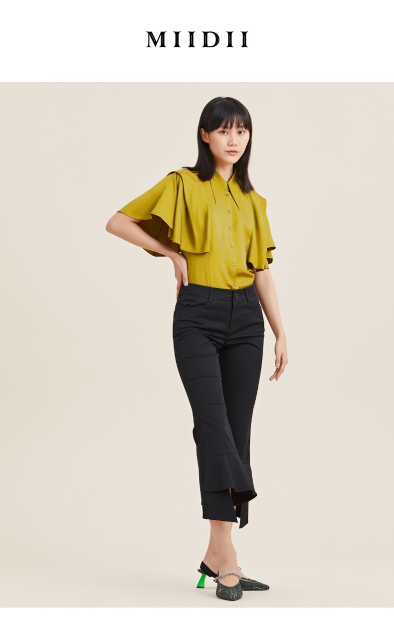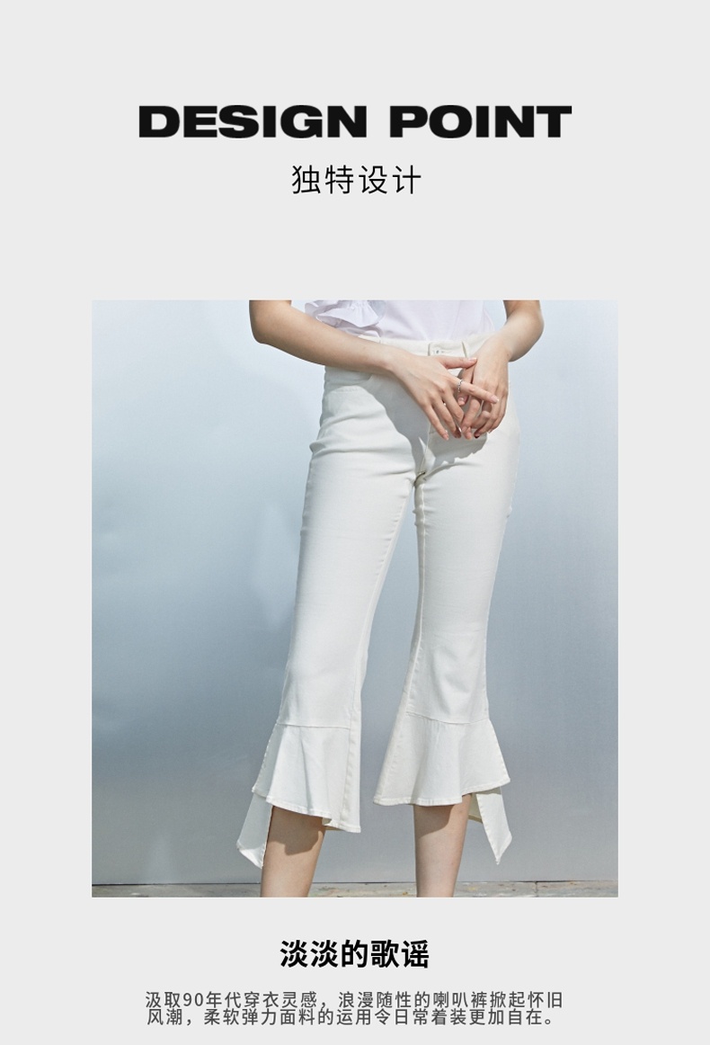 MIIDII/谜底21夏新品个性舒适荷叶边紧身喇叭裤女212MK0798