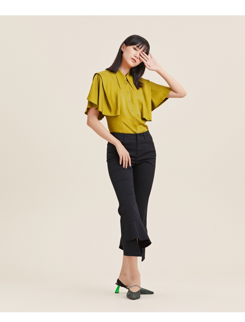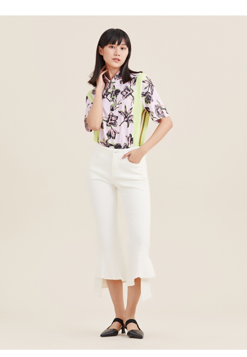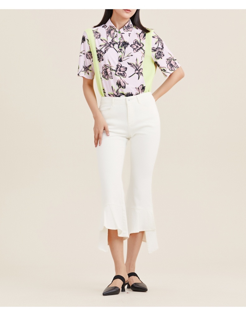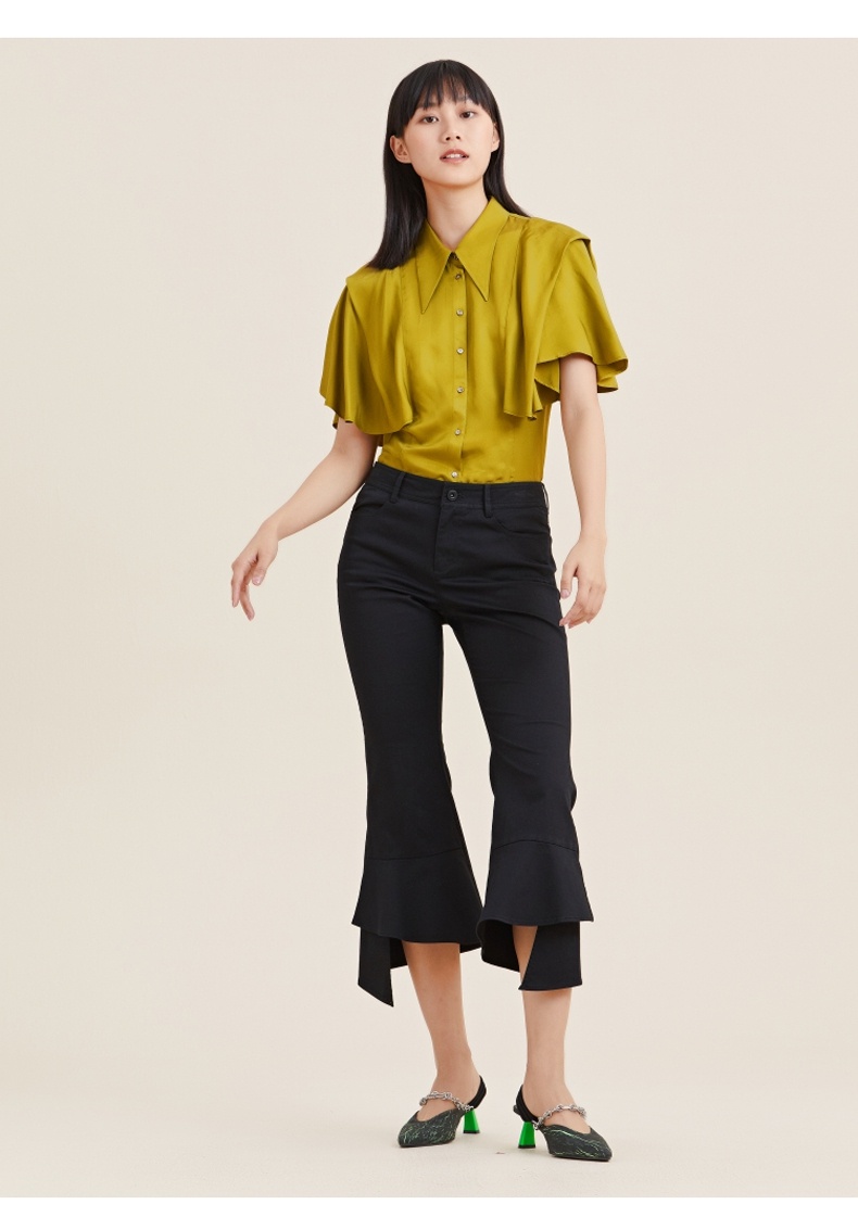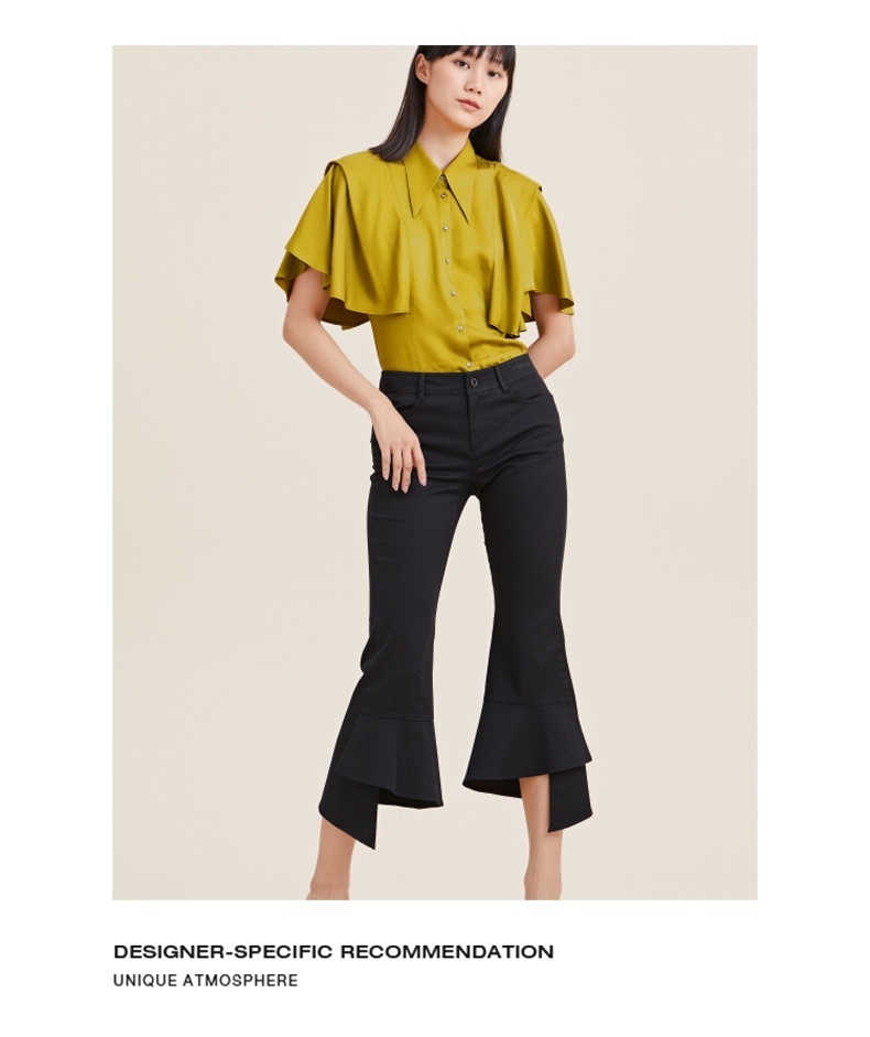 MIIDII/谜底21夏新品个性舒适荷叶边紧身喇叭裤女212MK0798