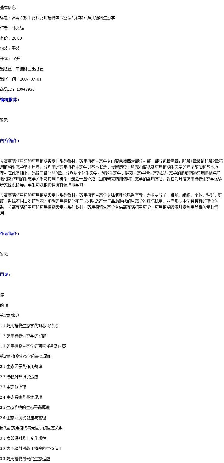 药用植物生态学 4481 林文雄 王庆亚考研大学教材中国林业出版社正版畅销书