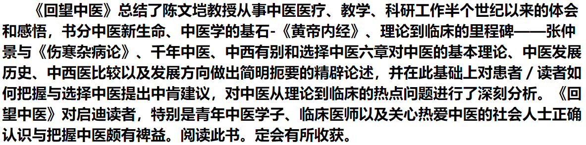 【出版社直销】回望中医 陈文垲 著 中国中医药出版社 中医书籍 陈文垲教授50年思考中医心悟之作