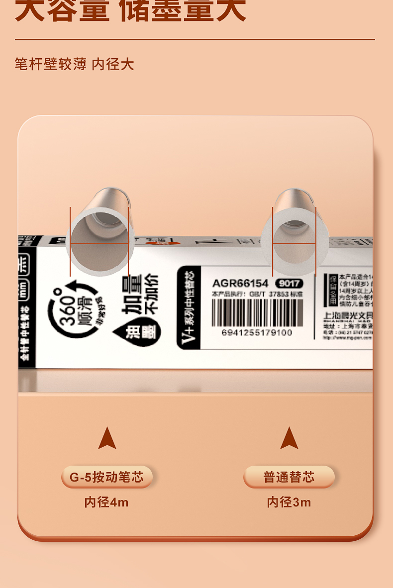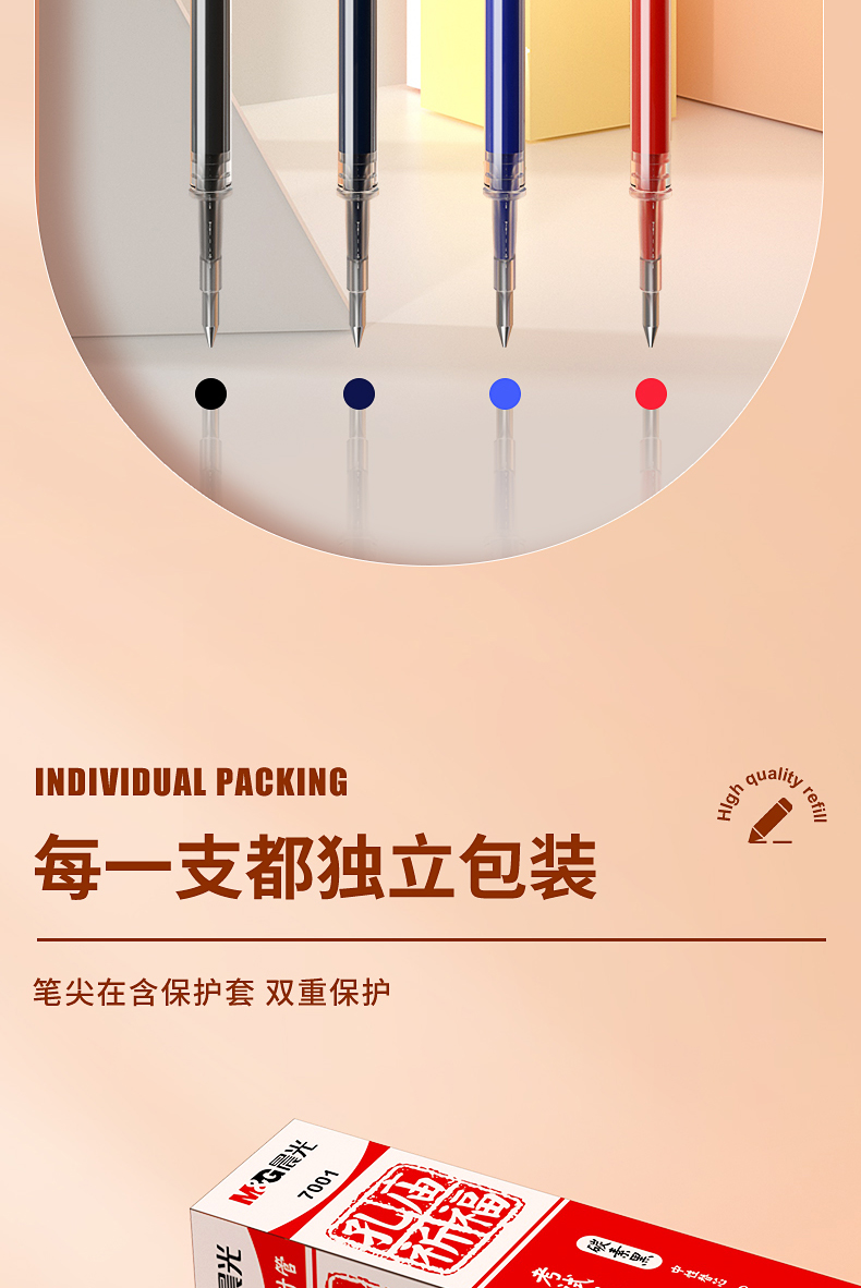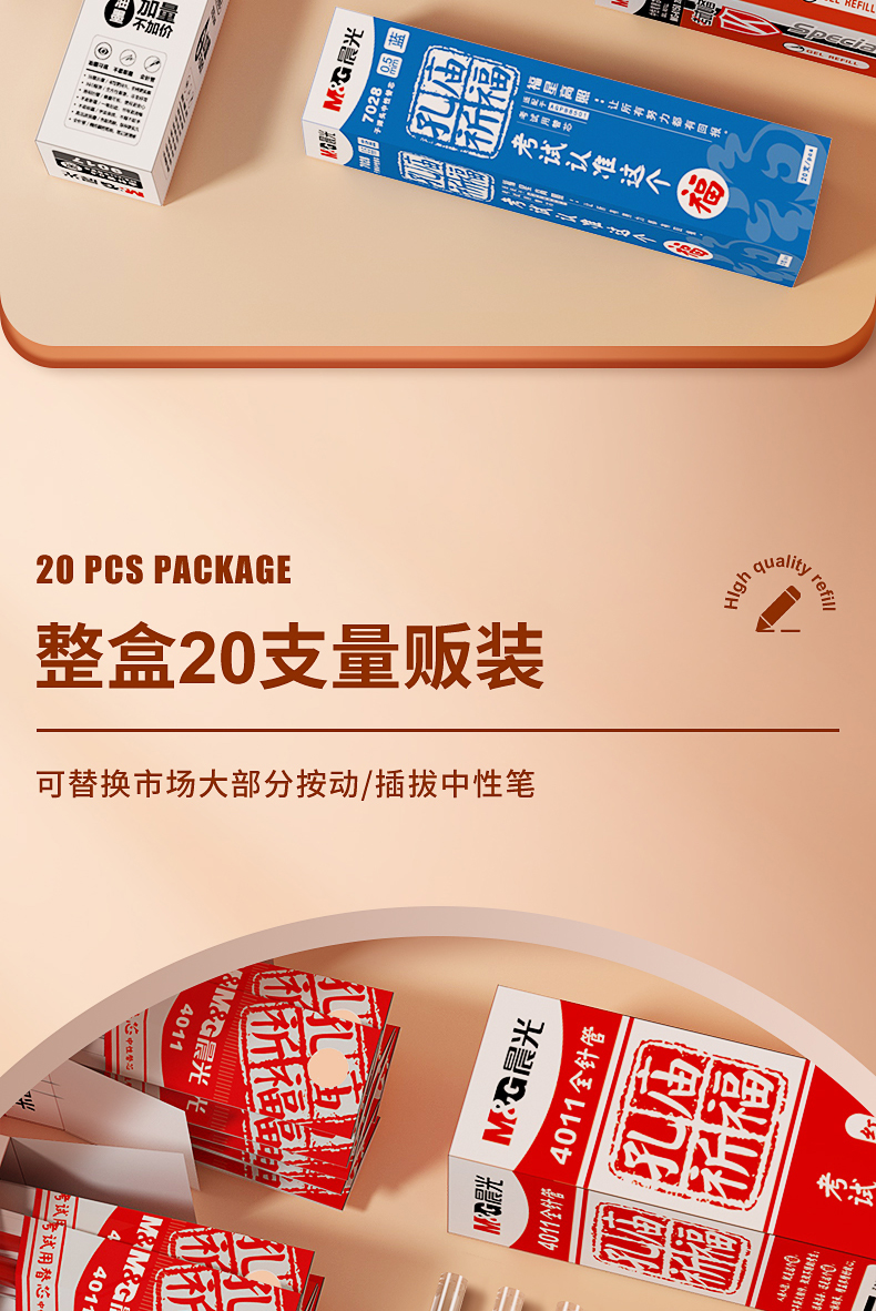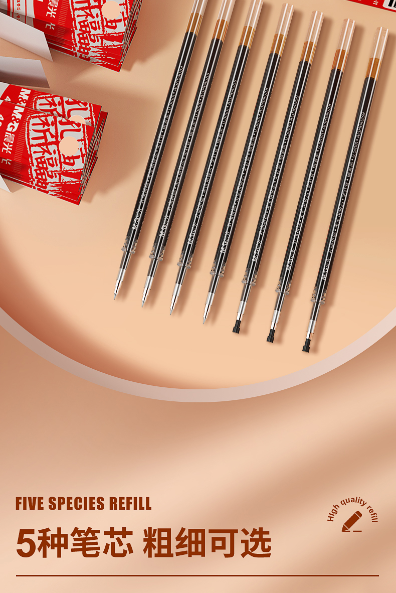 【仅供集采】晨光中性笔芯 240支/包 全针管0.5黑色水笔替芯按动式子弹头0.5mm碳素签字笔红蓝学生用考试专用办公商务水笔芯