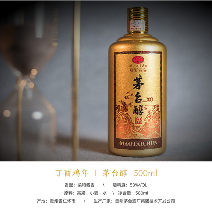 【推荐】茅台集团 茅台醇53度柔和酱香型白酒生肖鸡礼品酒 茅台醇(丁酉鸡年)整箱6瓶装 500ml*6