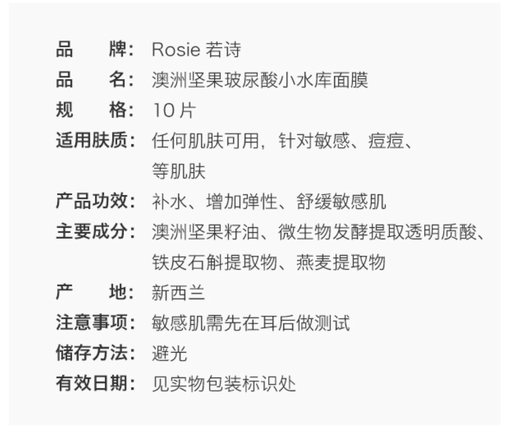 【保税仓】【高纯补水 温和不粘腻】FerNZ蜂兰 澳洲坚果玻尿酸小水库面膜 25ml*10片