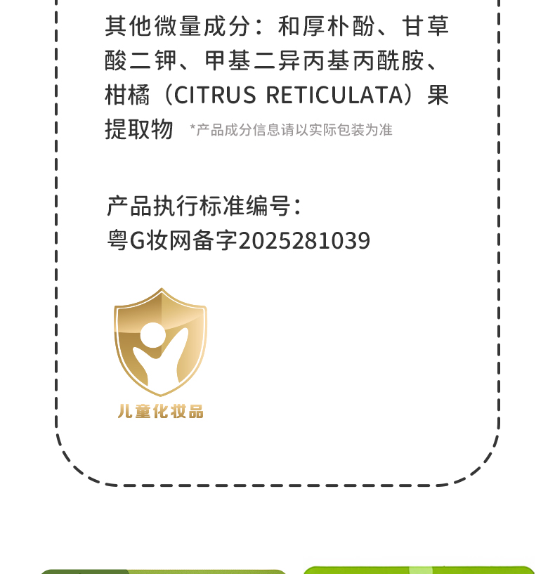 👉 温和不刺激:不含酒精、香精、激素、色素,通过皮肤刺激性检测,6个月以上宝宝就能放心用 。