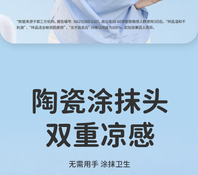 陶瓷头设计,陶瓷冰凉快速降低表皮温度;易涂抹,不易残留乳