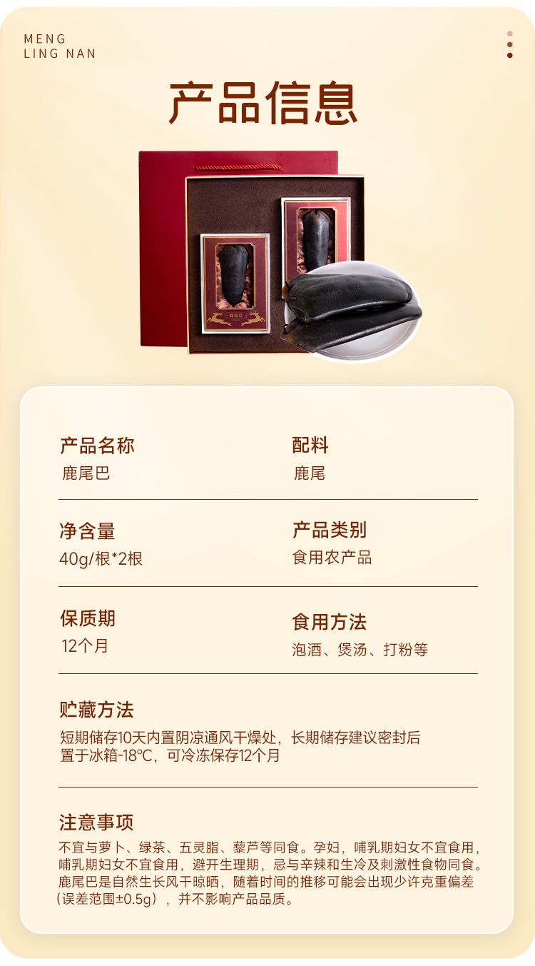 【滋补肾元 强身健腰】梦岭南鹿尾巴40g礼盒装 吉林原产 珍稀难得 大补元气