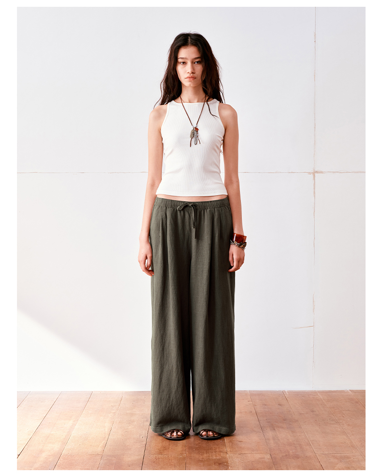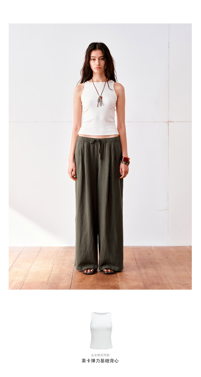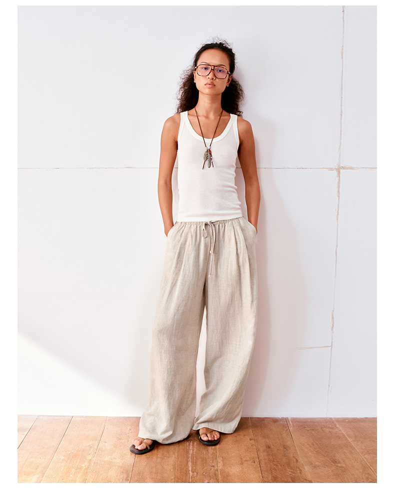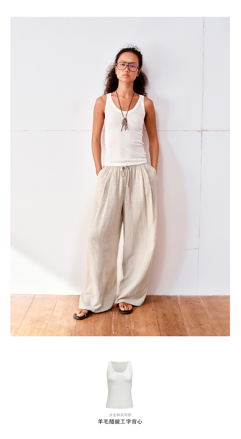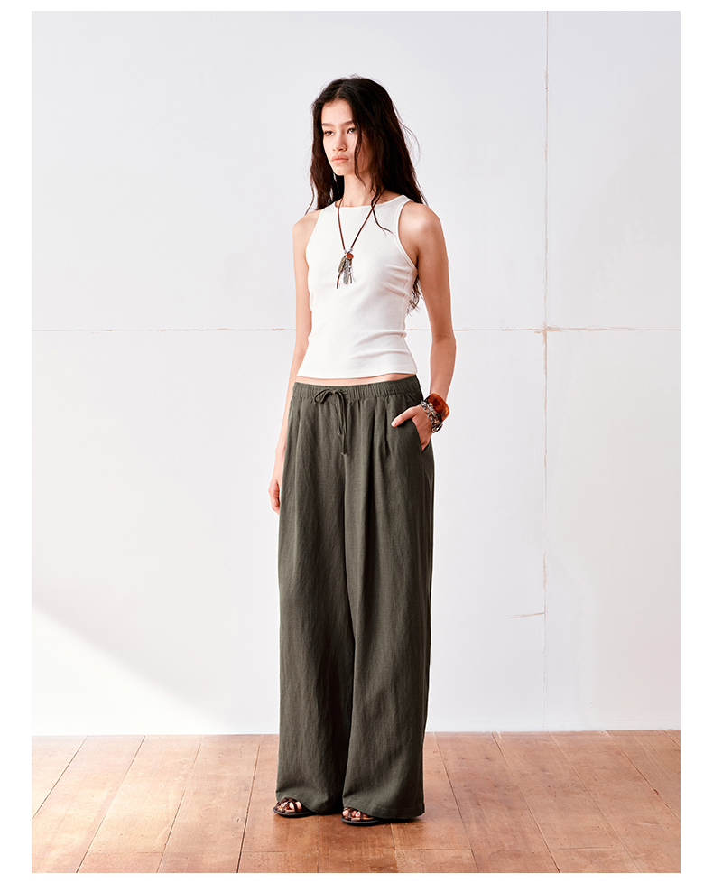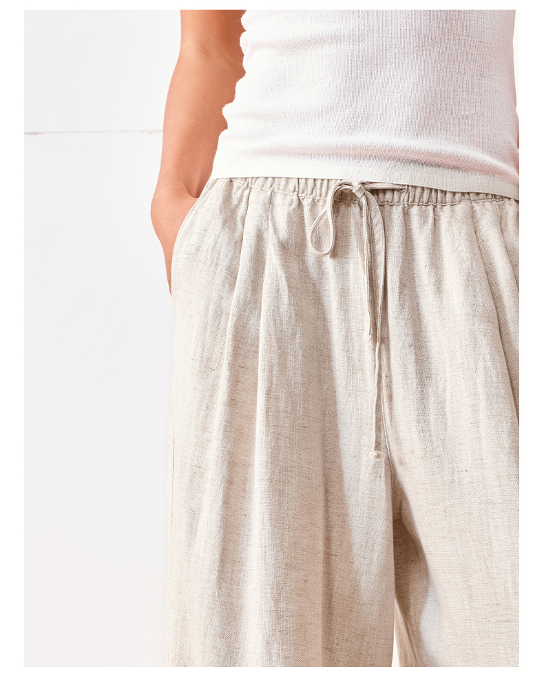 NUTH亚麻宽松阔腿休闲裤女 浅亚麻色/白色/绿色