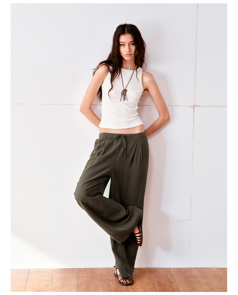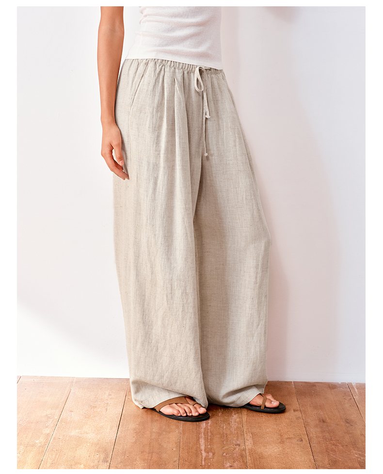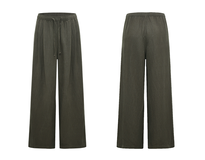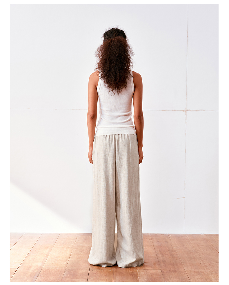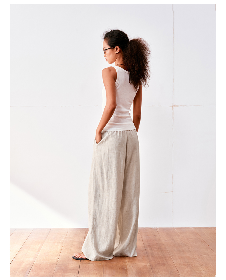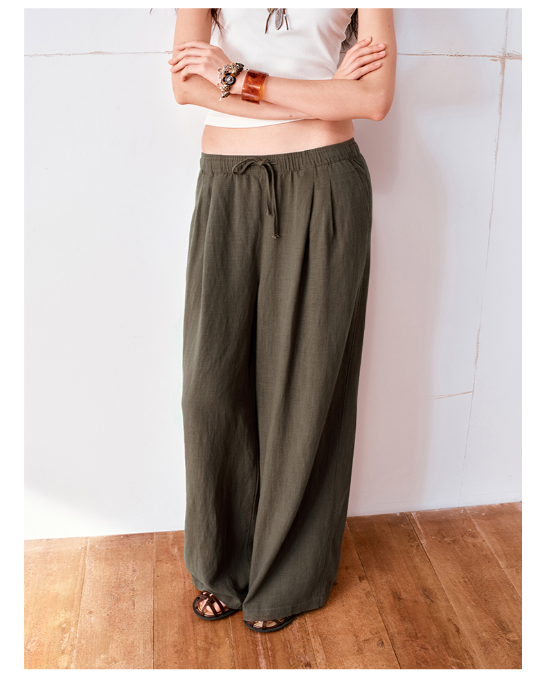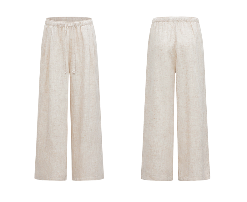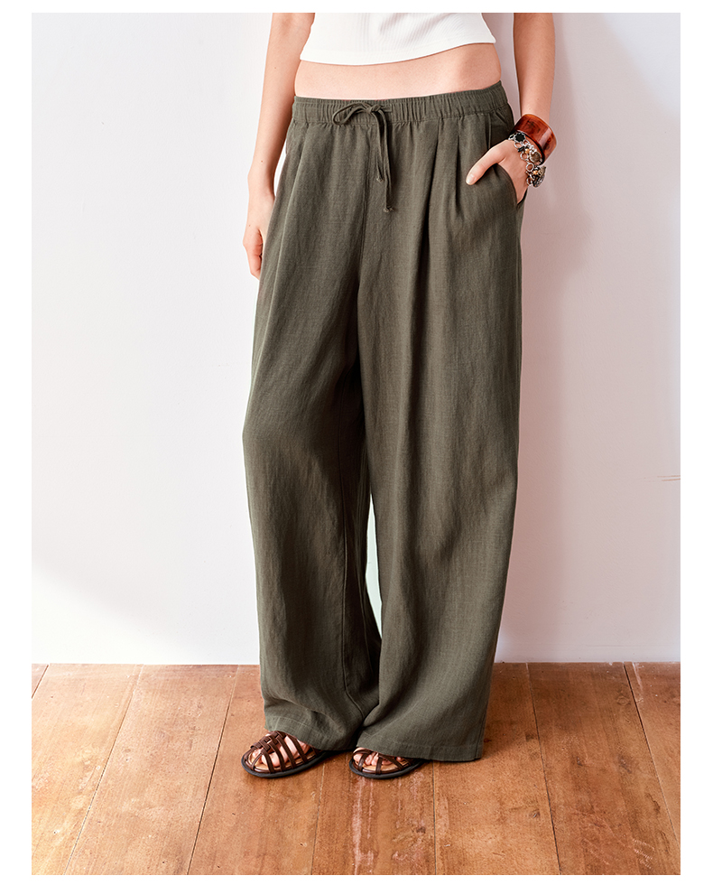 NUTH亚麻宽松阔腿休闲裤女 浅亚麻色/白色/绿色