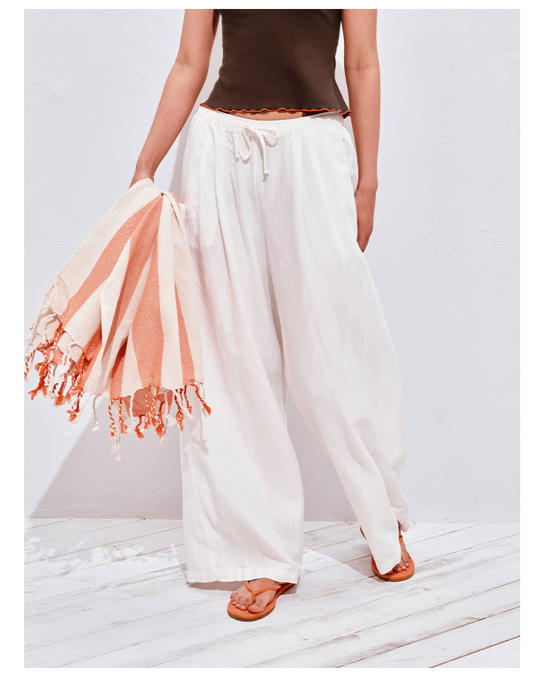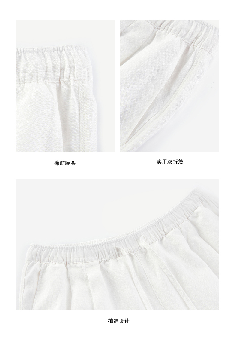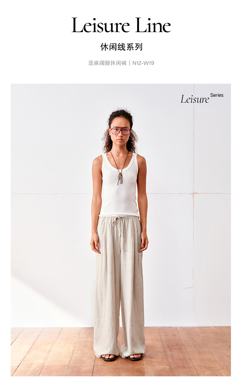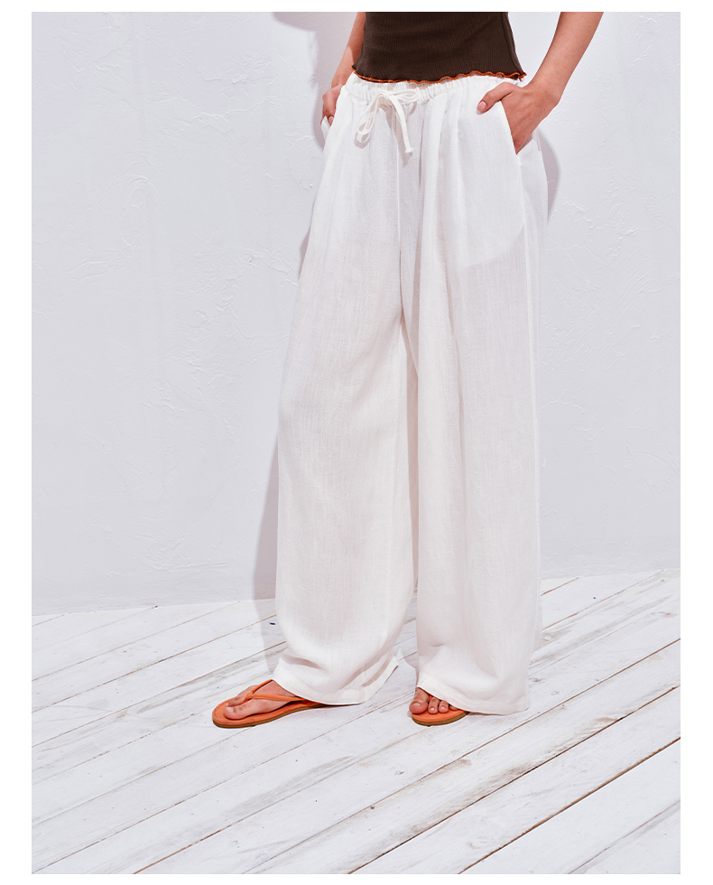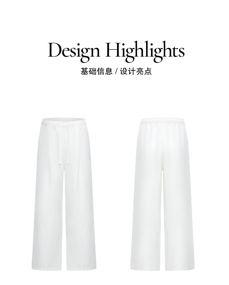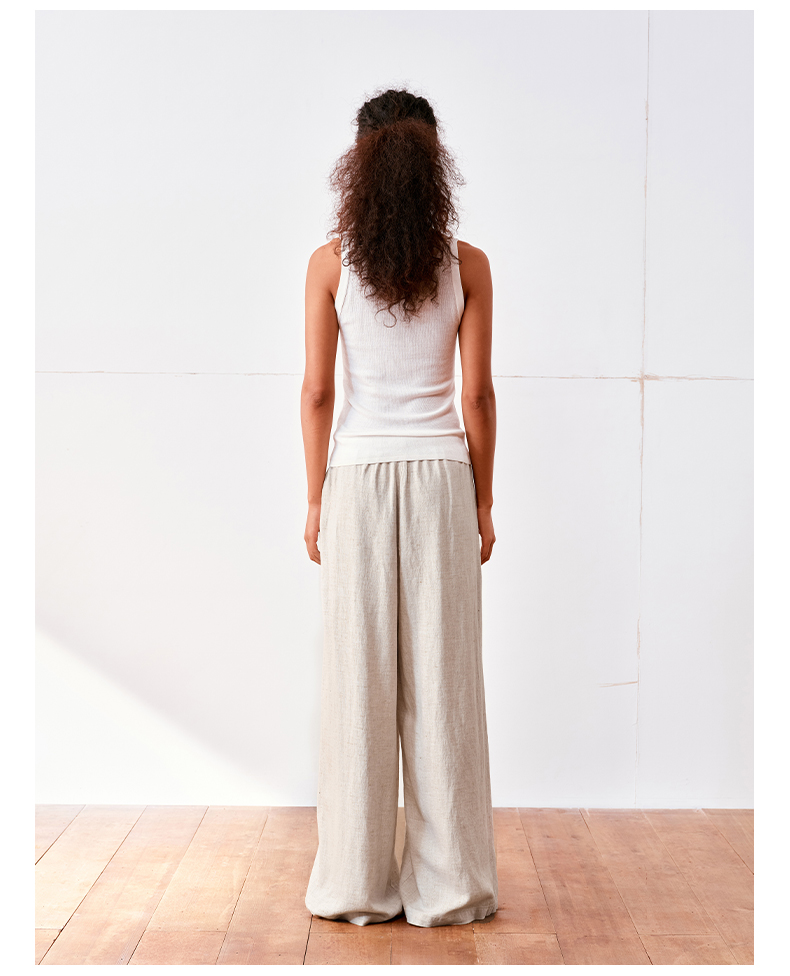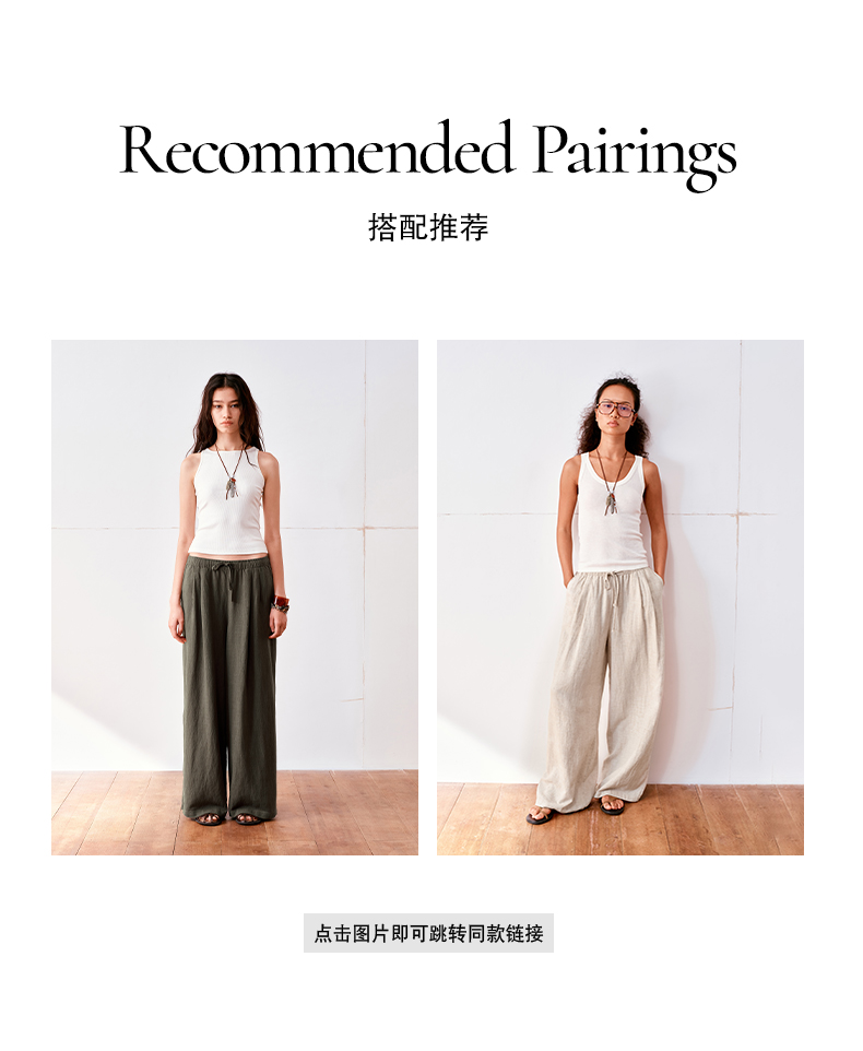 NUTH亚麻宽松阔腿休闲裤女 浅亚麻色/白色/绿色