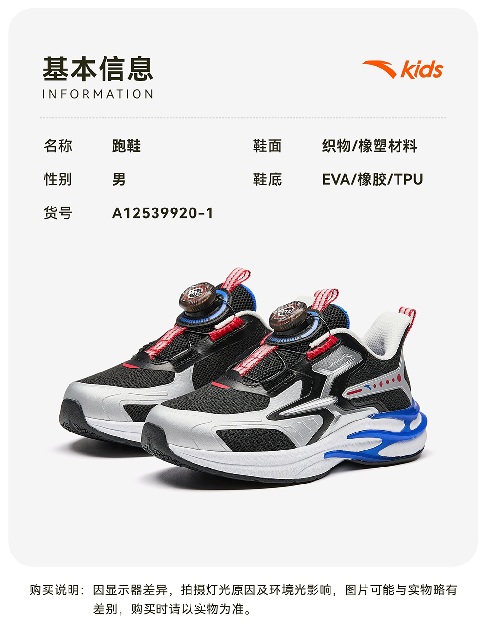 安踏赤焰|童鞋儿童男小童跑鞋2025秋冬新款潮酷跑步鞋学生运动鞋A12539920