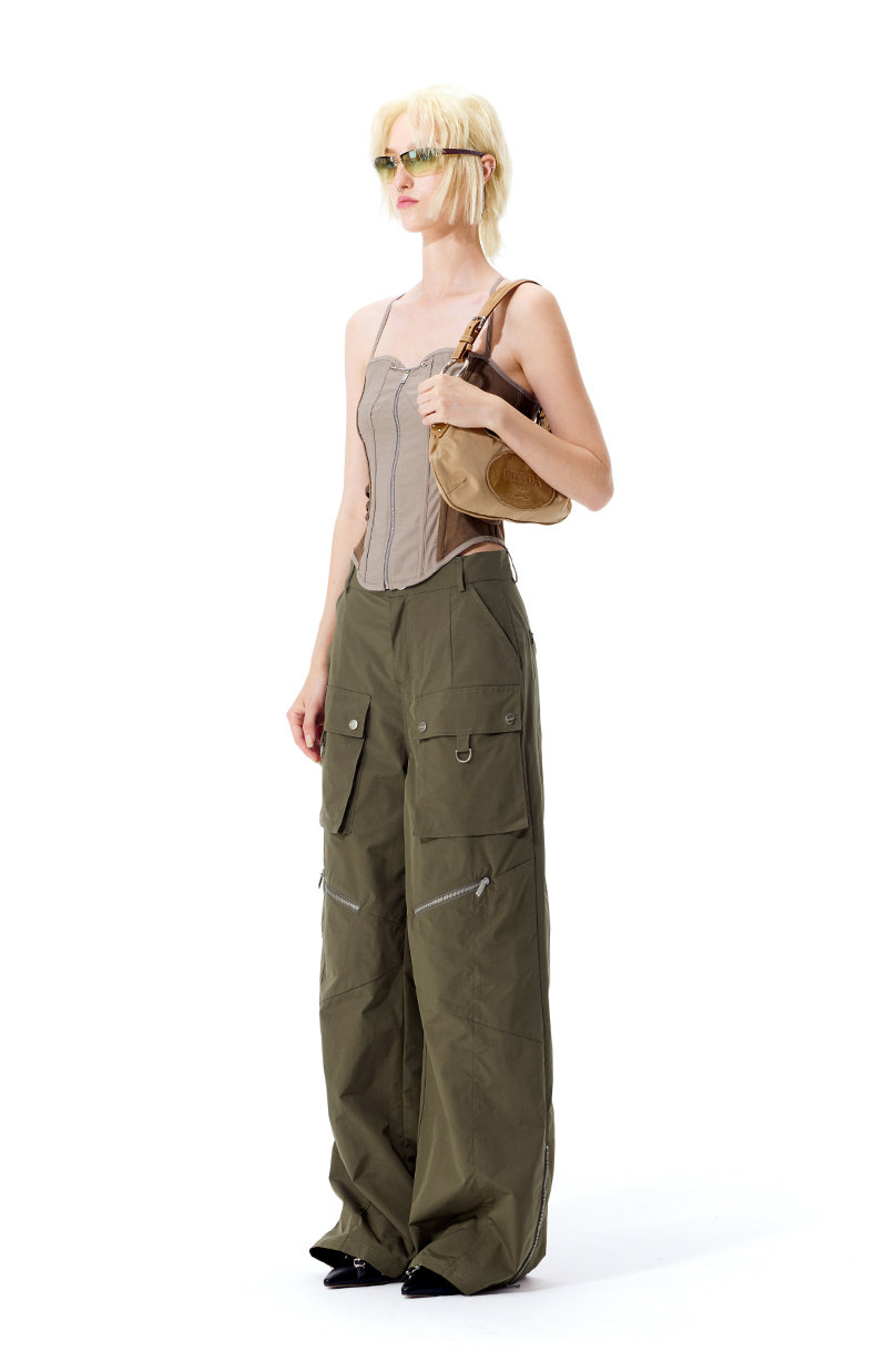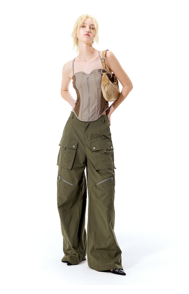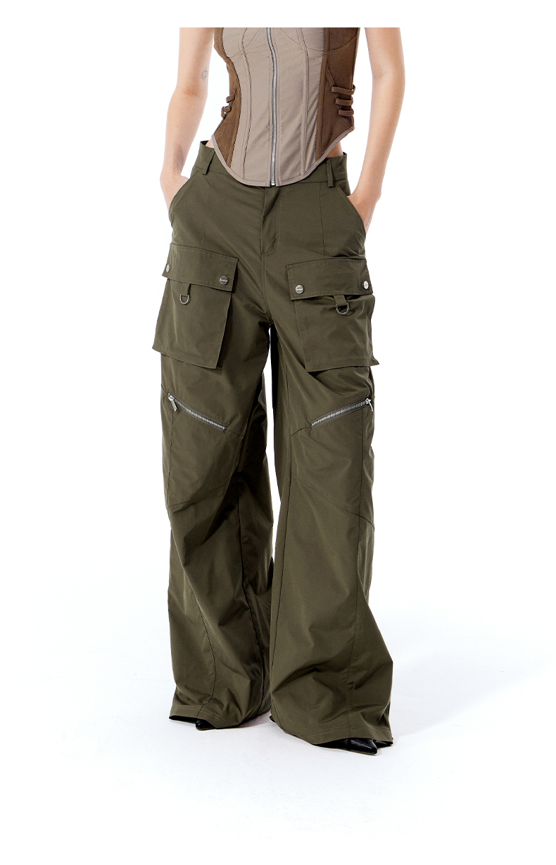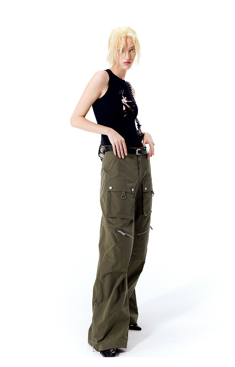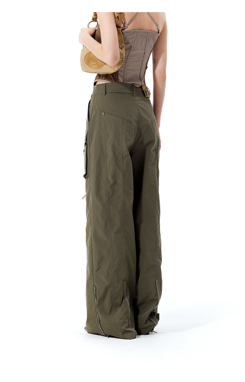 NUTH显瘦不仅是一点 绿色宽松直筒工装裤女夏百搭美式阔腿休闲裤