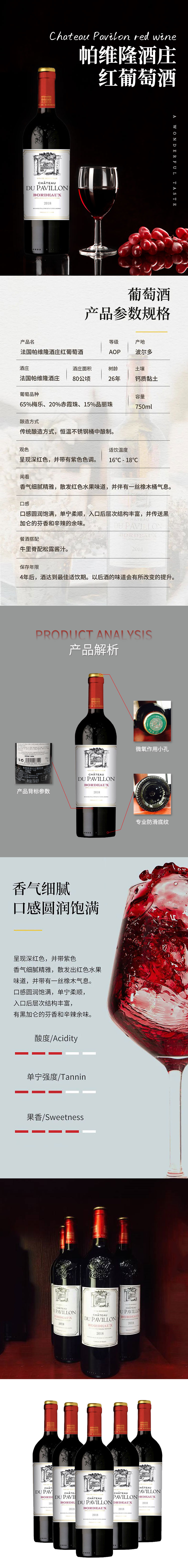 法国原瓶进口红酒 14%度 柔和润滑 帕维隆酒庄红葡萄酒 750ml*6