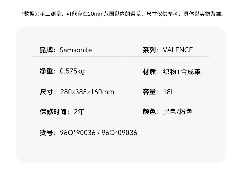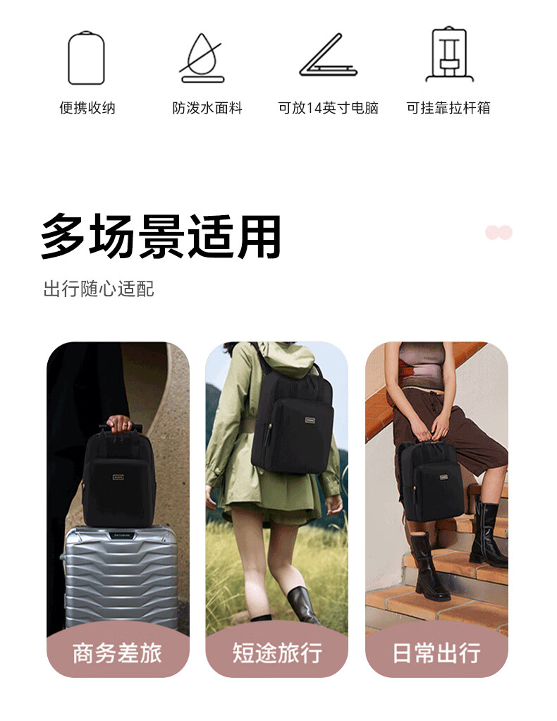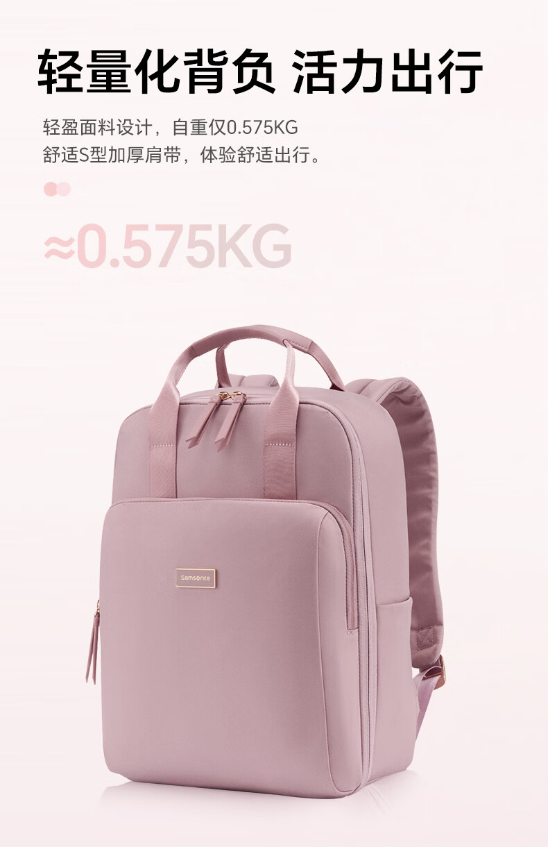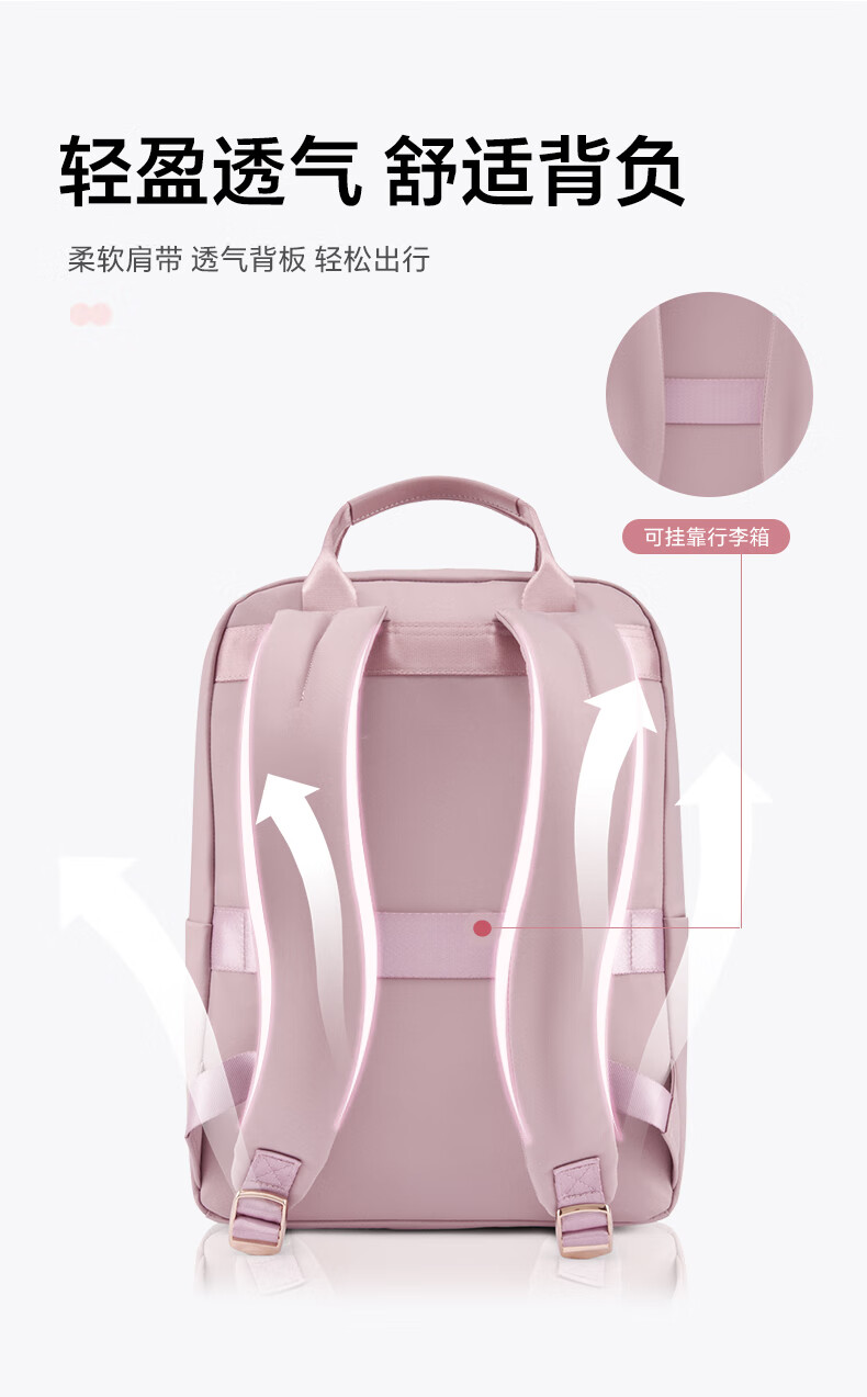 新秀丽(Samsonite)双肩包女新款大容量商旅背包粉色96Q*90036