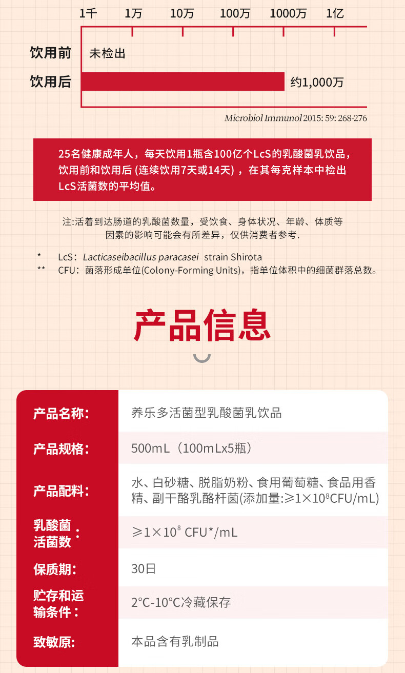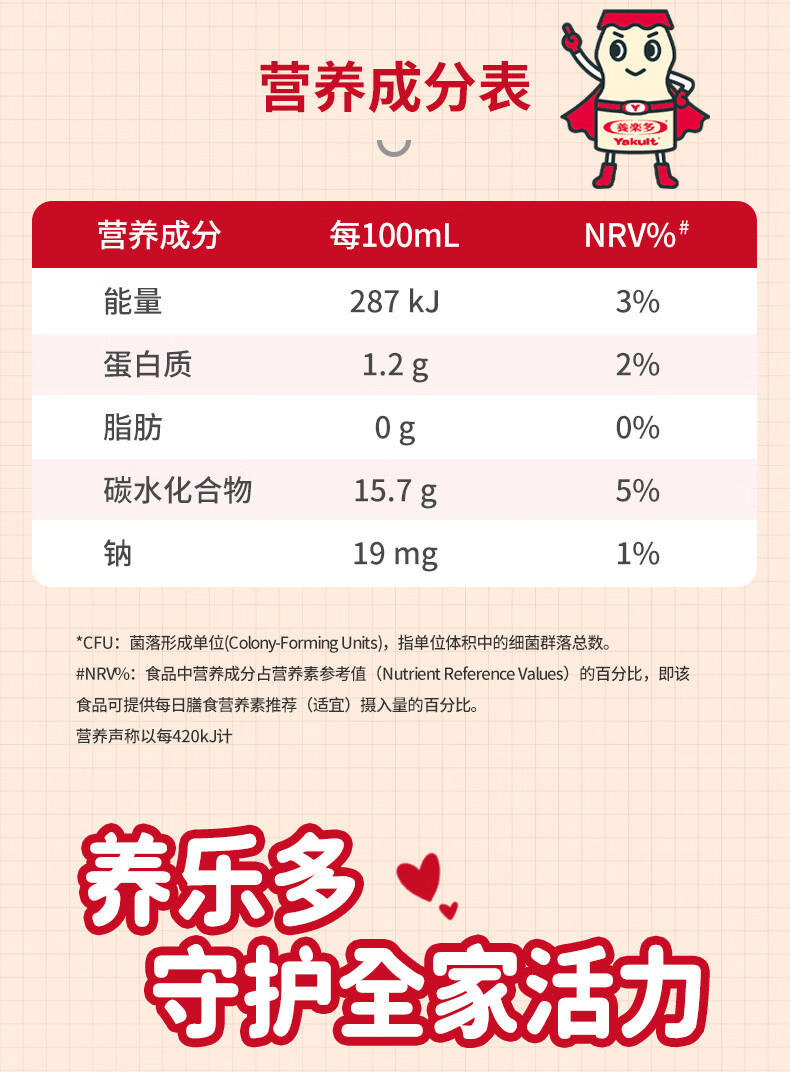 养乐多活菌型乳酸菌乳饮品 原味红瓶100ml*5瓶*4