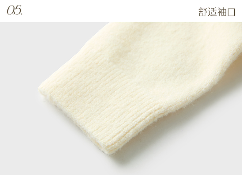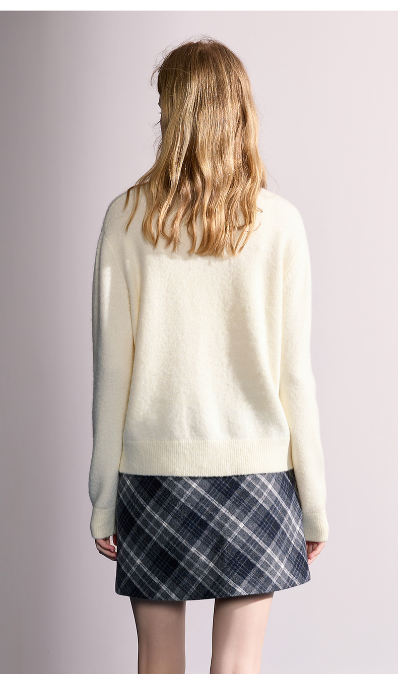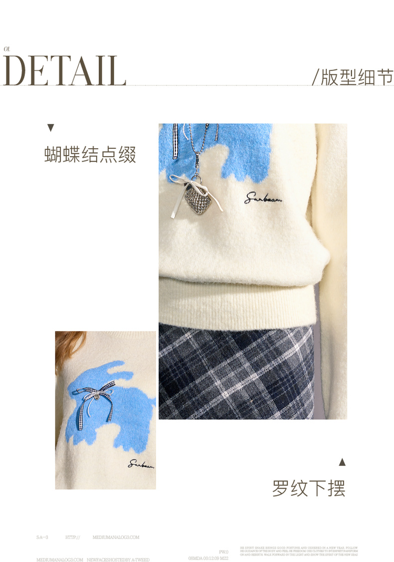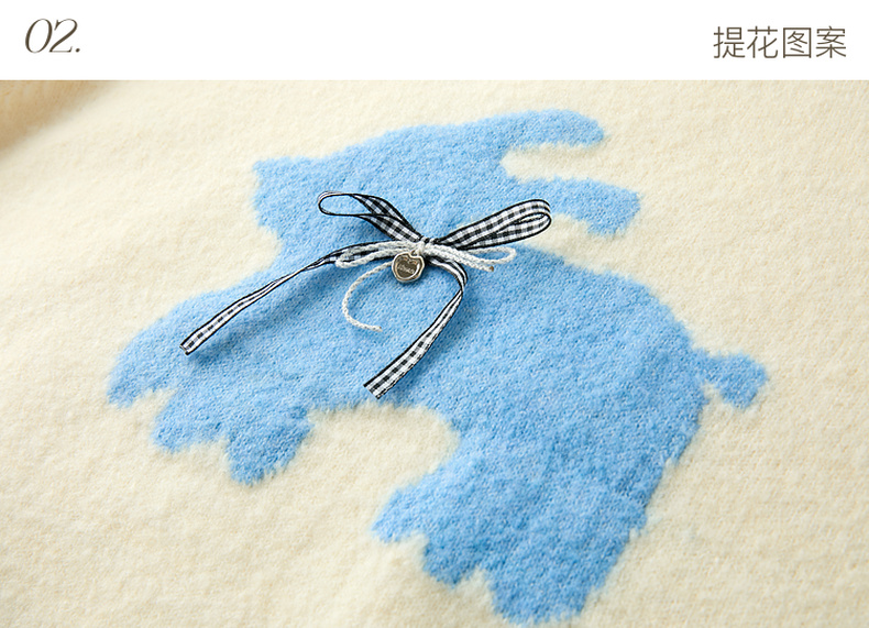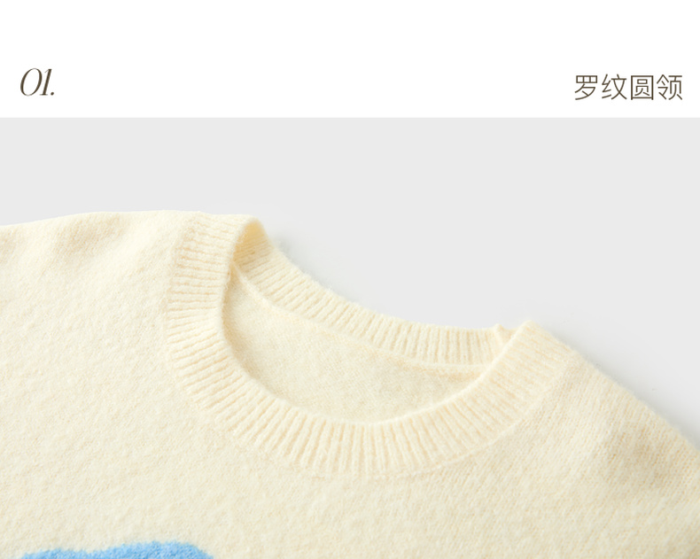 三彩2025秋季新款圆领长袖针织衫蝴蝶结绣花毛衫套头上衣M