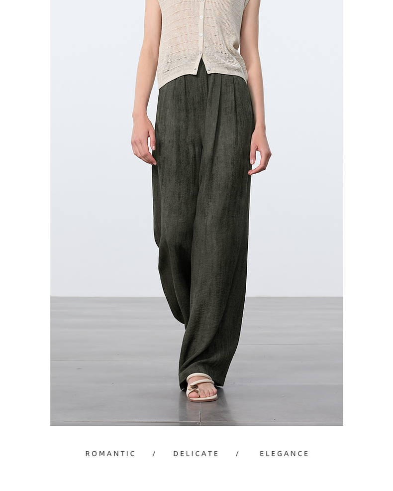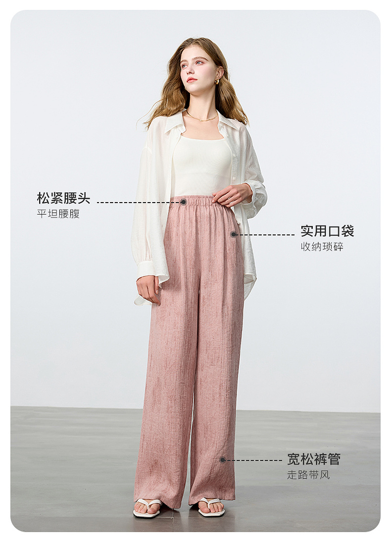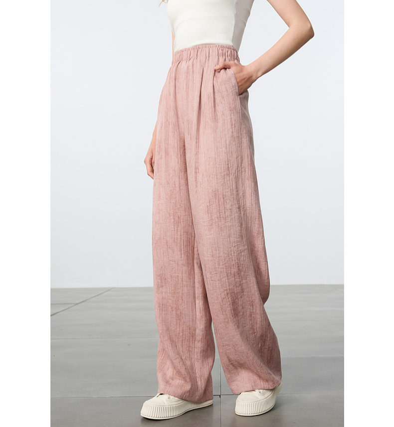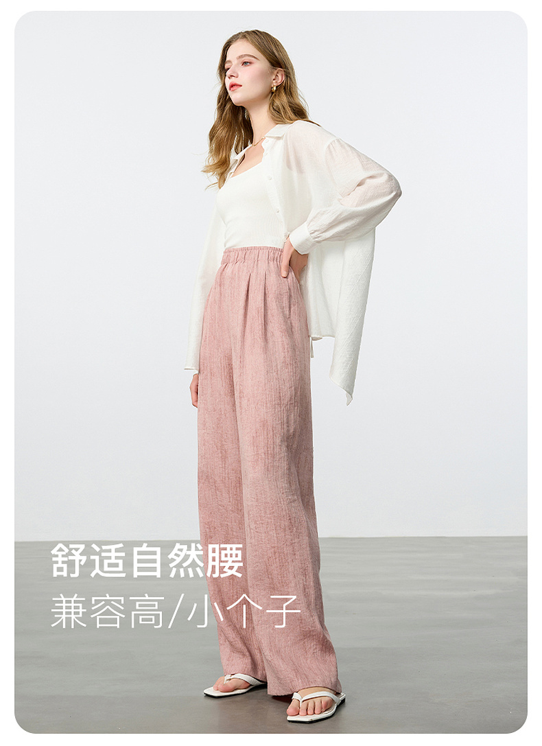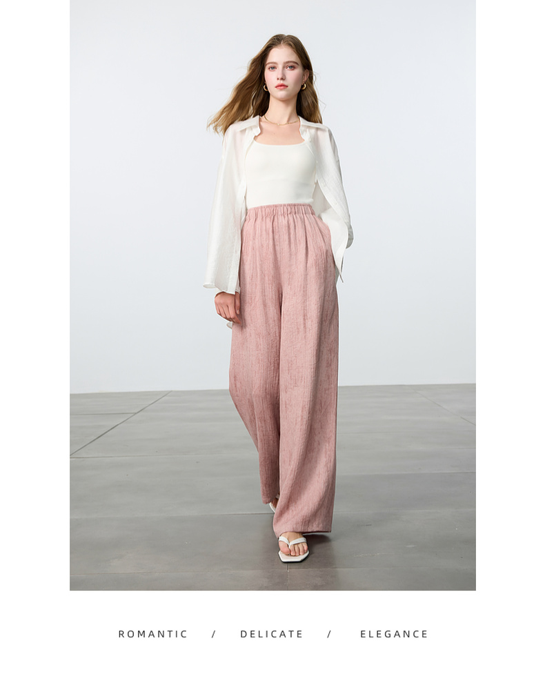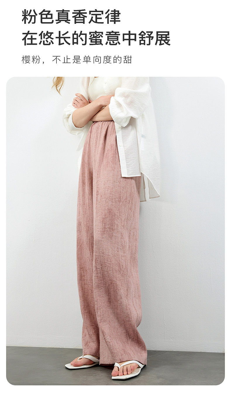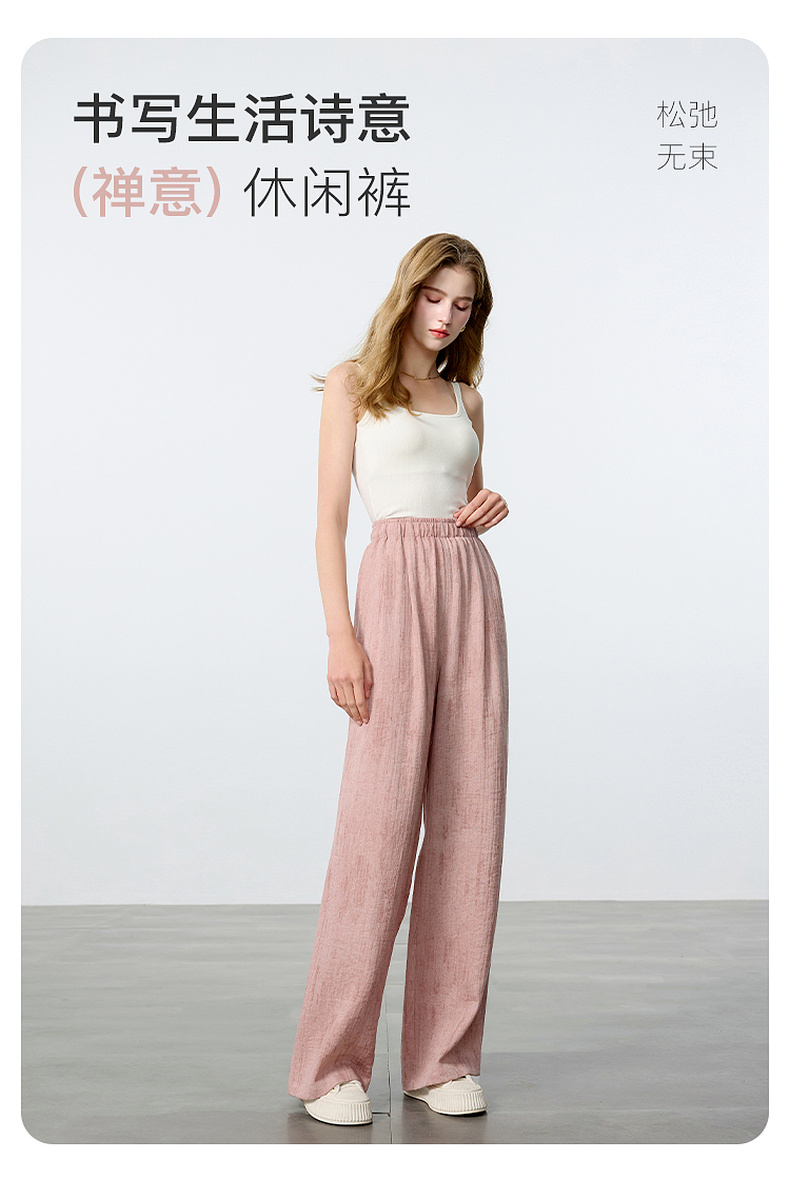 三彩2025夏季新款宽松松紧腰禅意休闲裤垂感显瘦阔腿裤长裤M