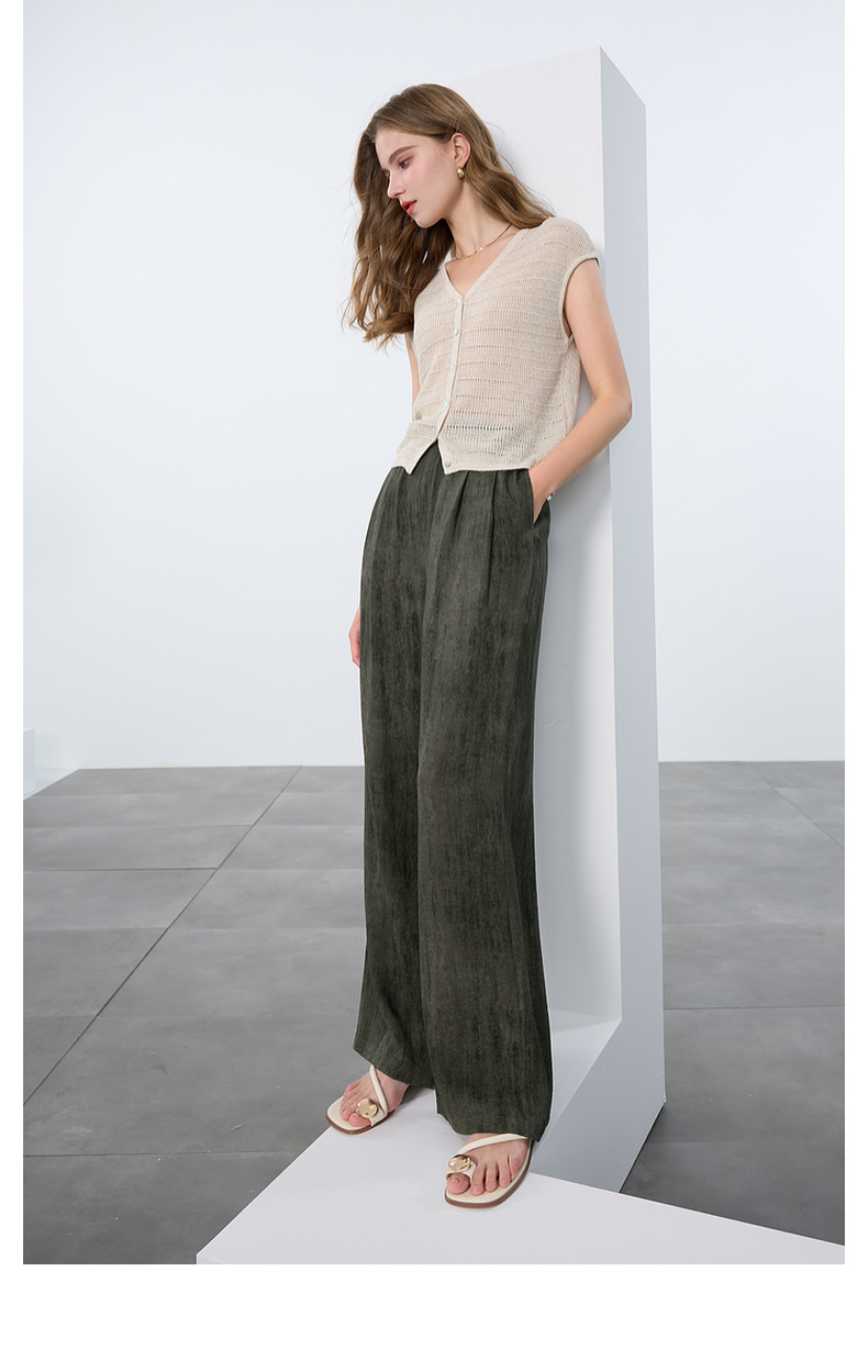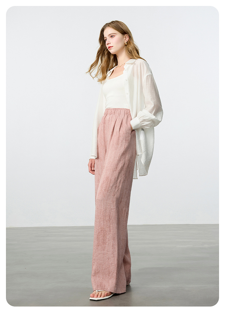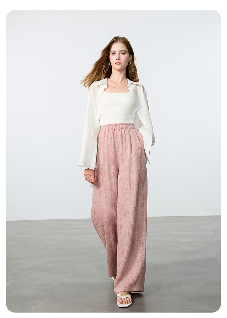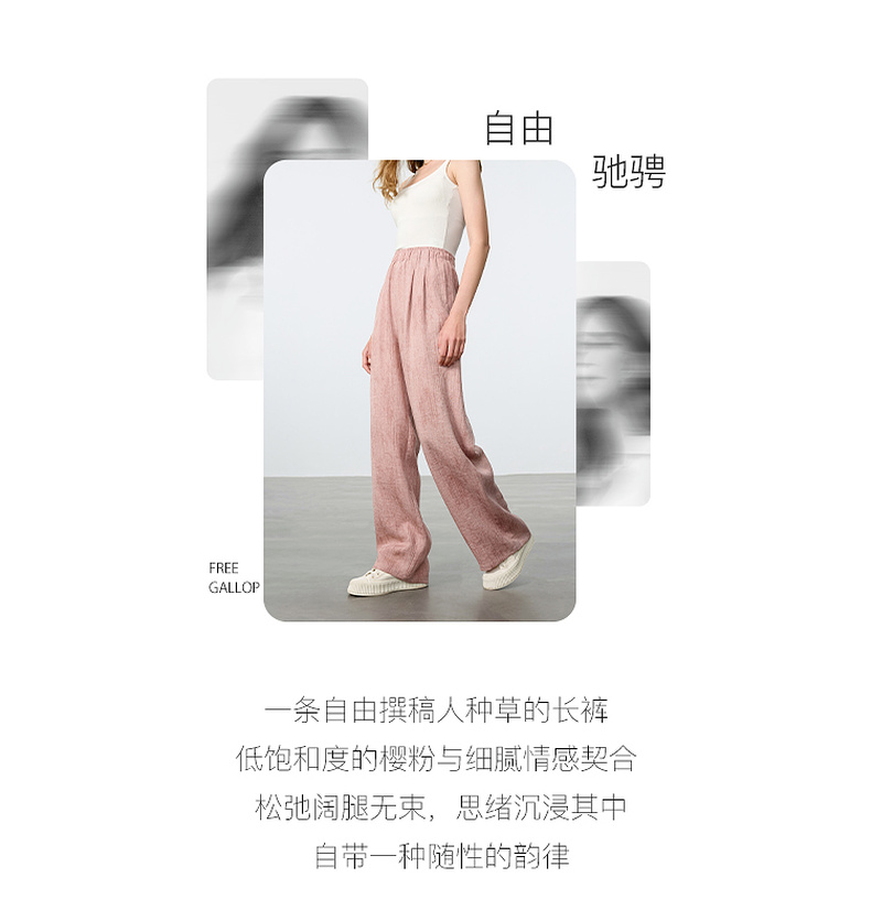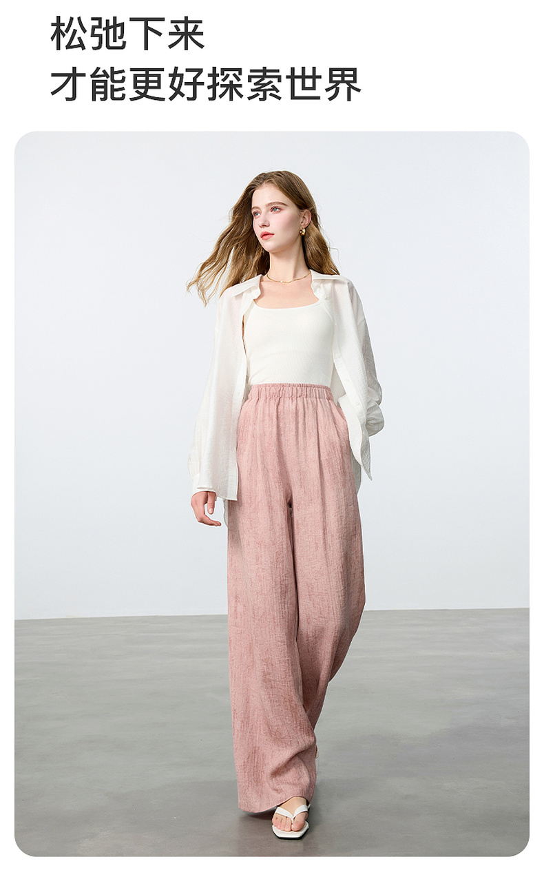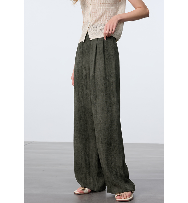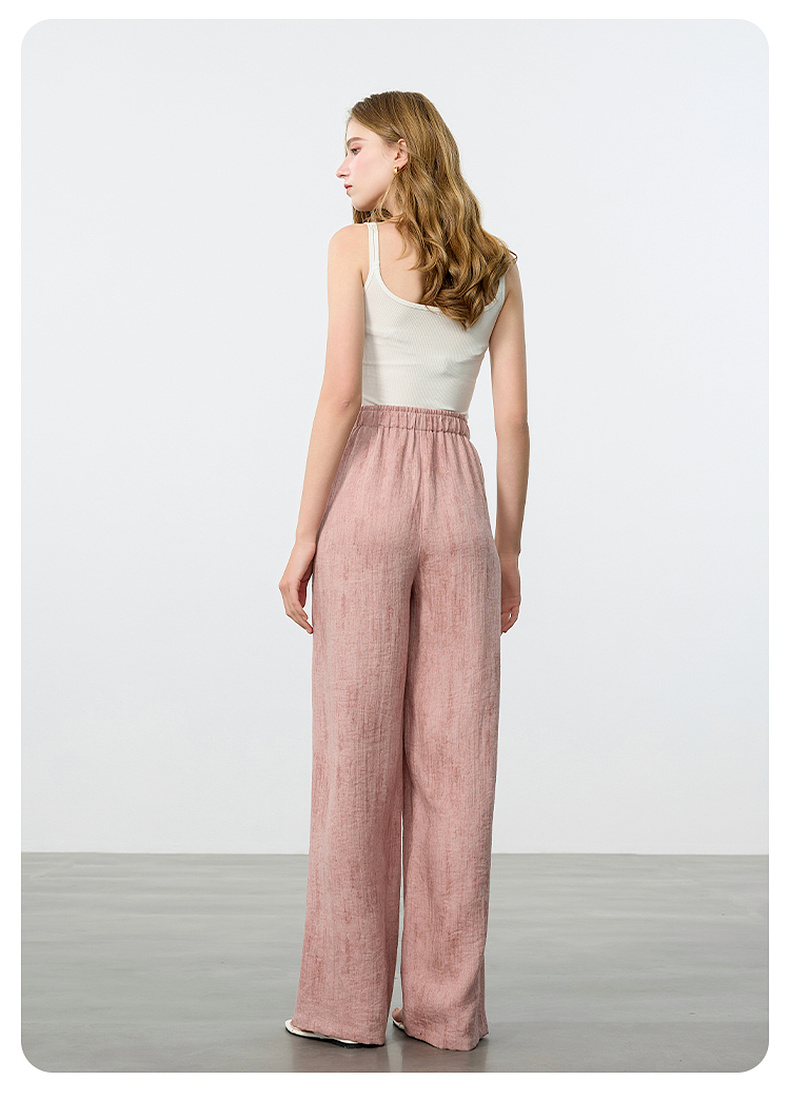三彩2025夏季新款宽松松紧腰禅意休闲裤垂感显瘦阔腿裤长裤M