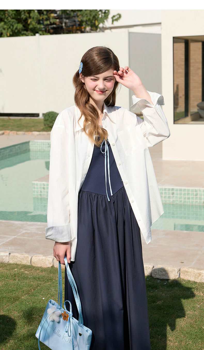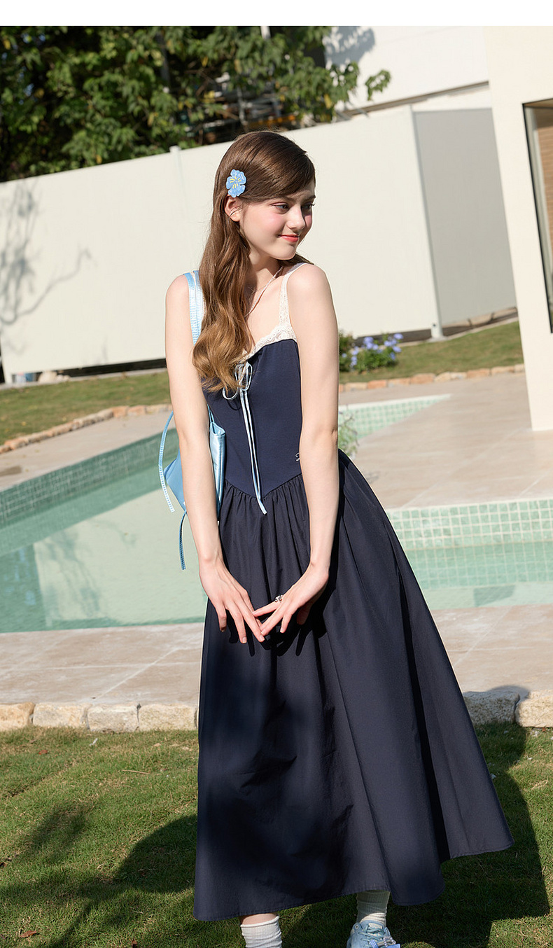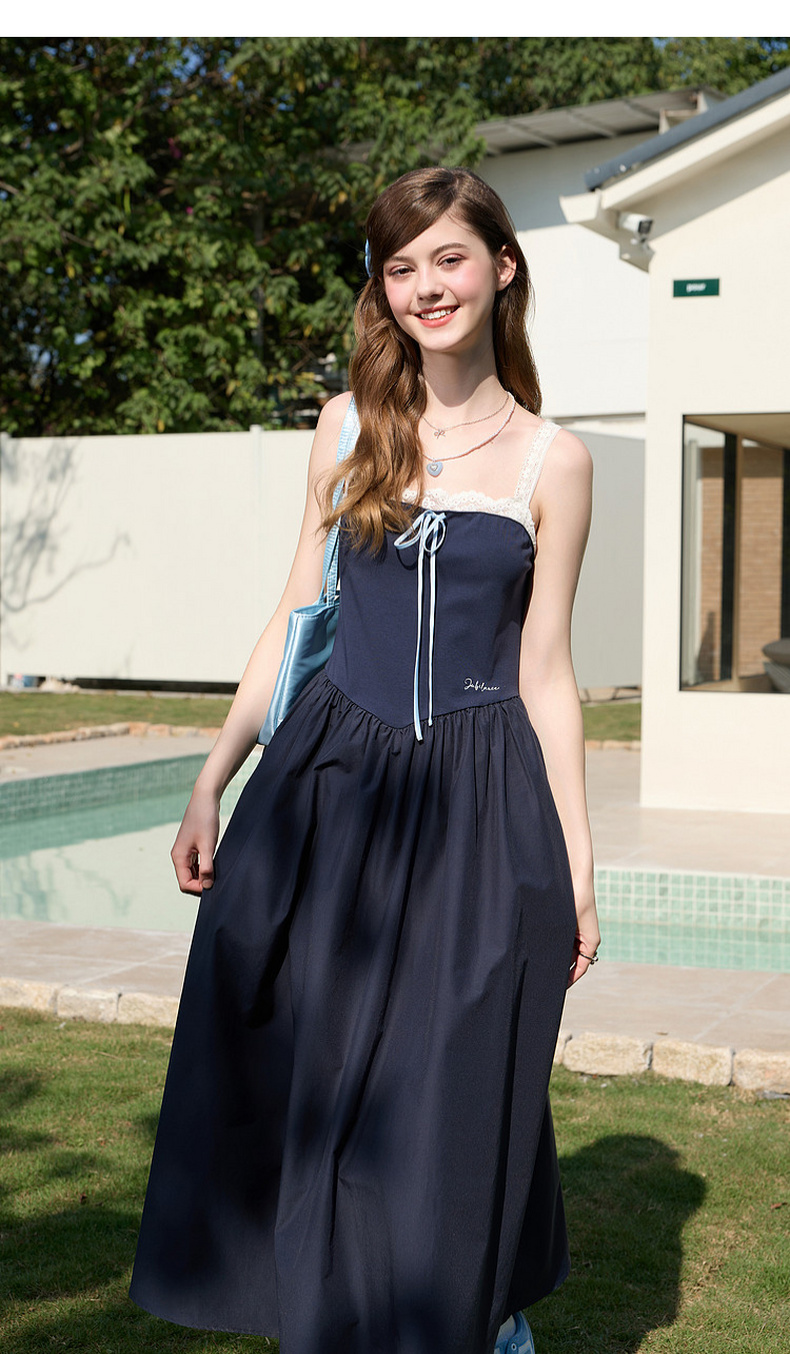三彩独醒2026春季新款一字领花边吊带裙连衣裙无袖A字裙蓬蓬长裙F