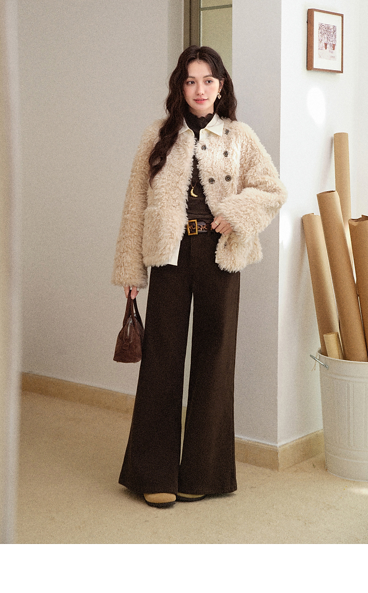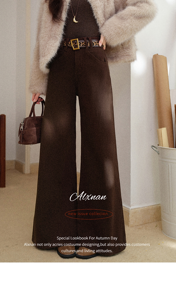 鹿向南「纵享丝滑」咖色微喇牛仔裤秋冬新款时尚百搭显瘦休闲裤女