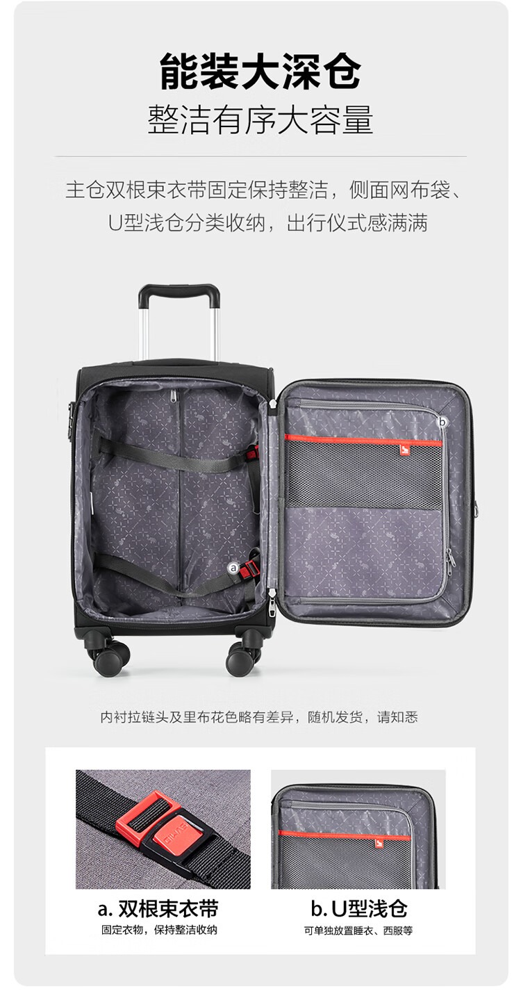 爱华仕(OIWAS)商务旅行箱包男士行李箱登机箱牛津布拉杆箱布箱出国大容量密码箱 20英寸托运箱OCX6069-20黑色