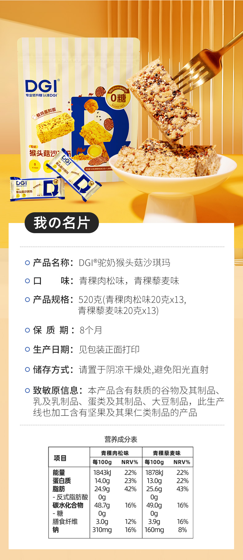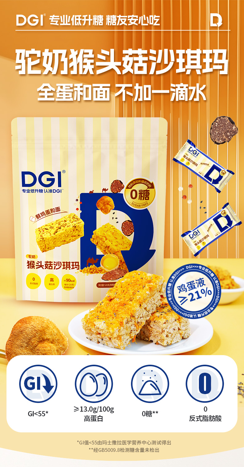 【DGI】低GI沙琪玛无糖猴头菇驼奶代餐饱腹脂卡孕妈糖友孕妇早餐零食