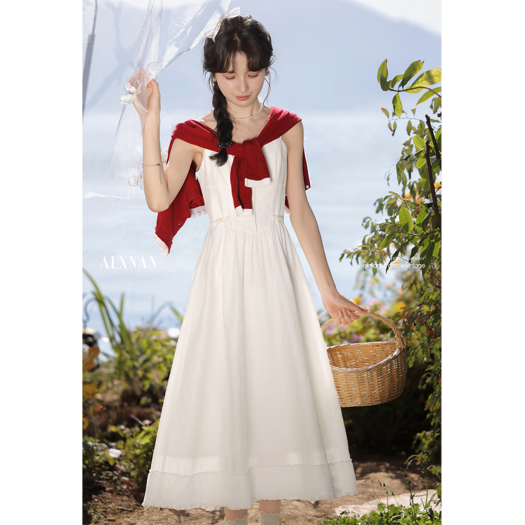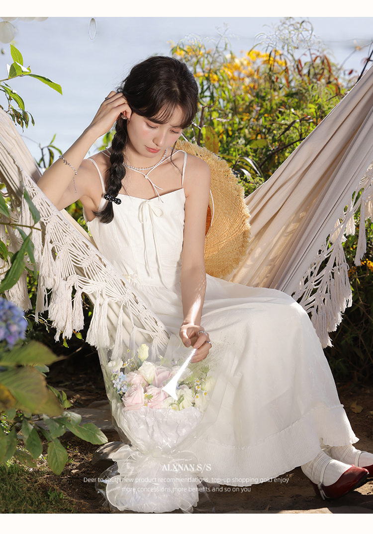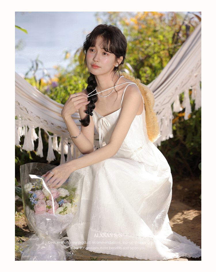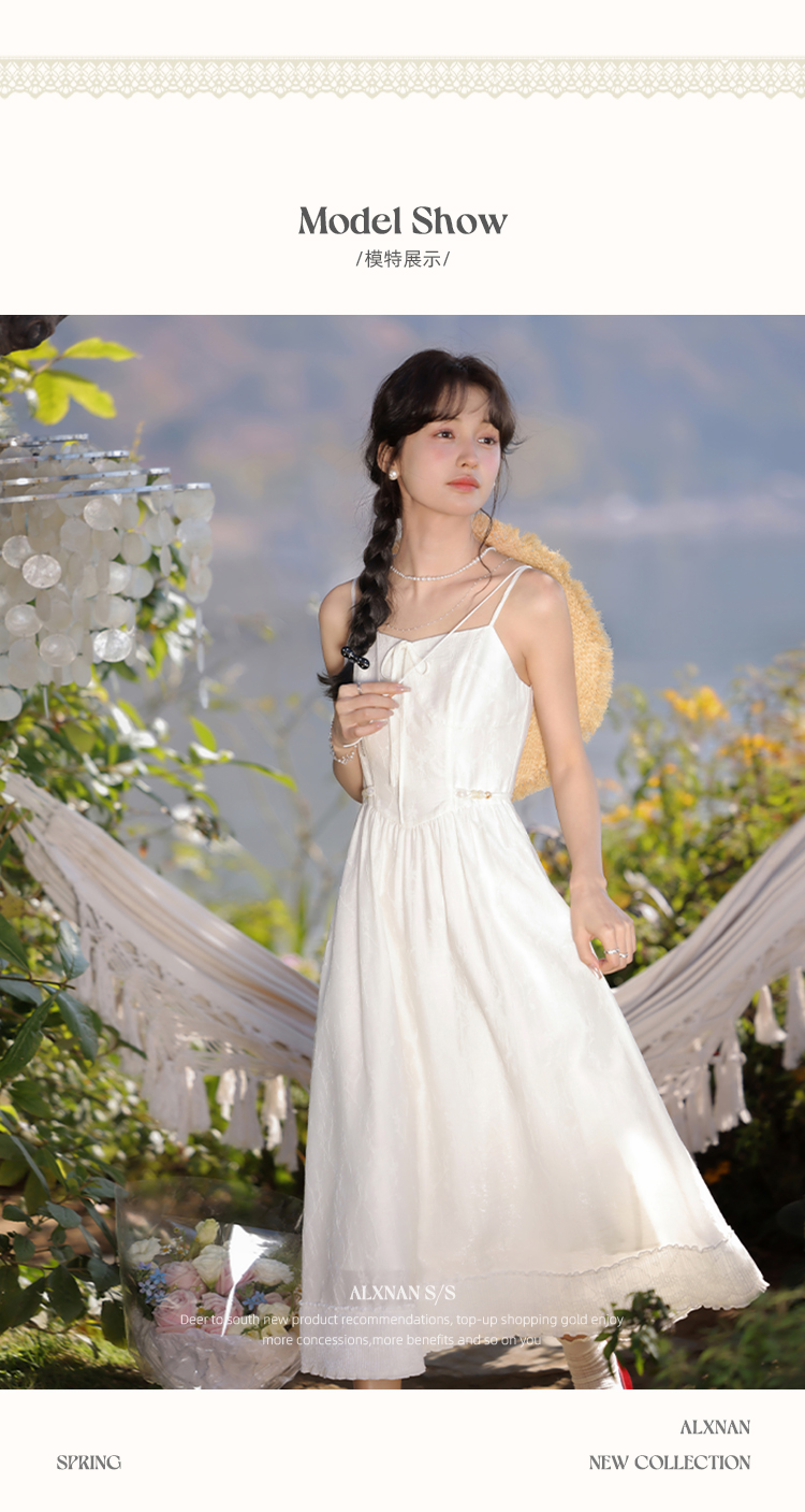 【6折秒杀】鹿向南「清风白雾」气质吊带连衣裙L52818