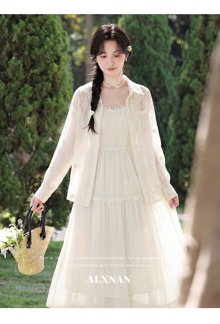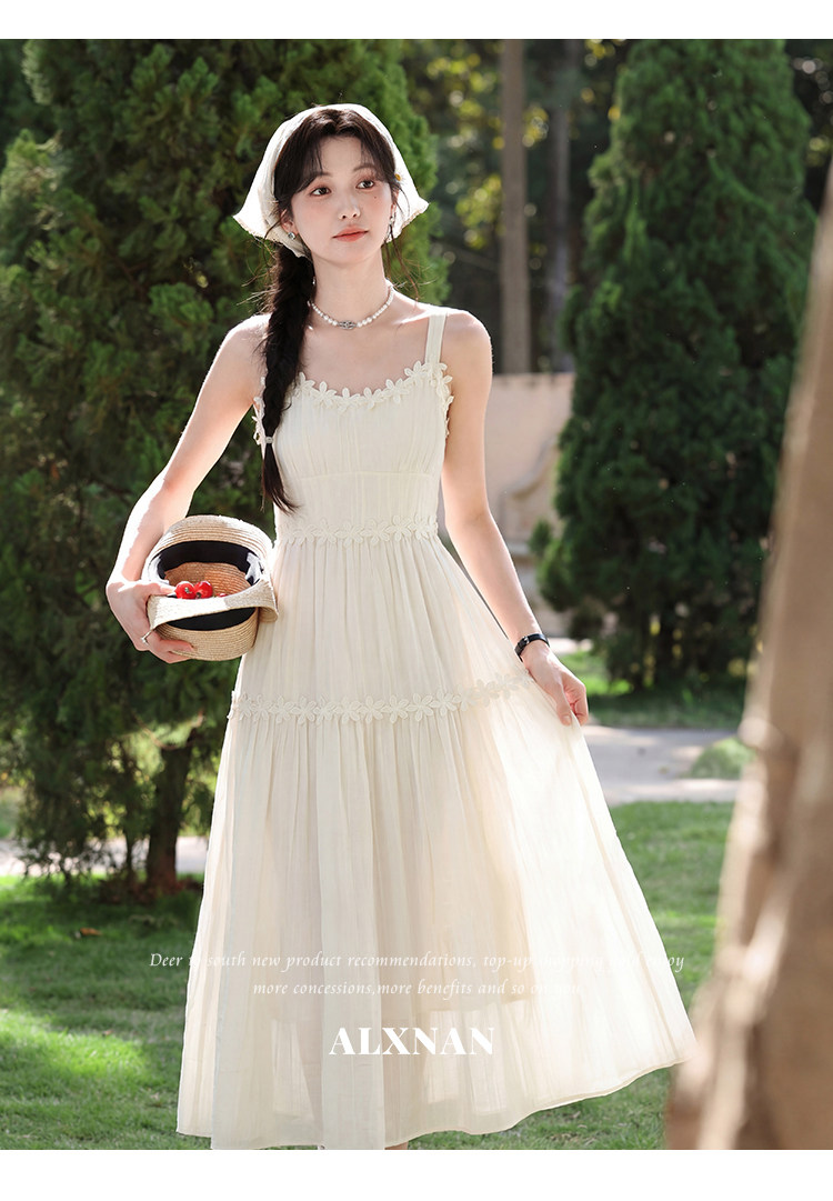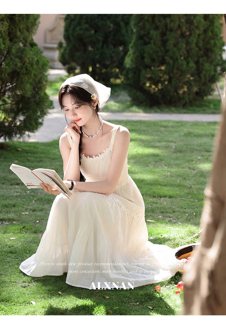 鹿向南【风织半幅春】夏季新款原创设计小众连衣裙慵懒感吊带裙女