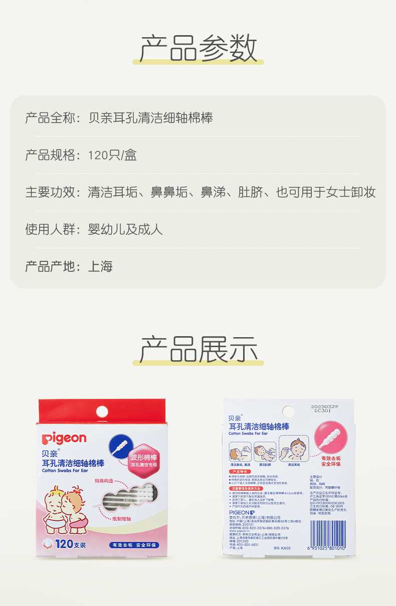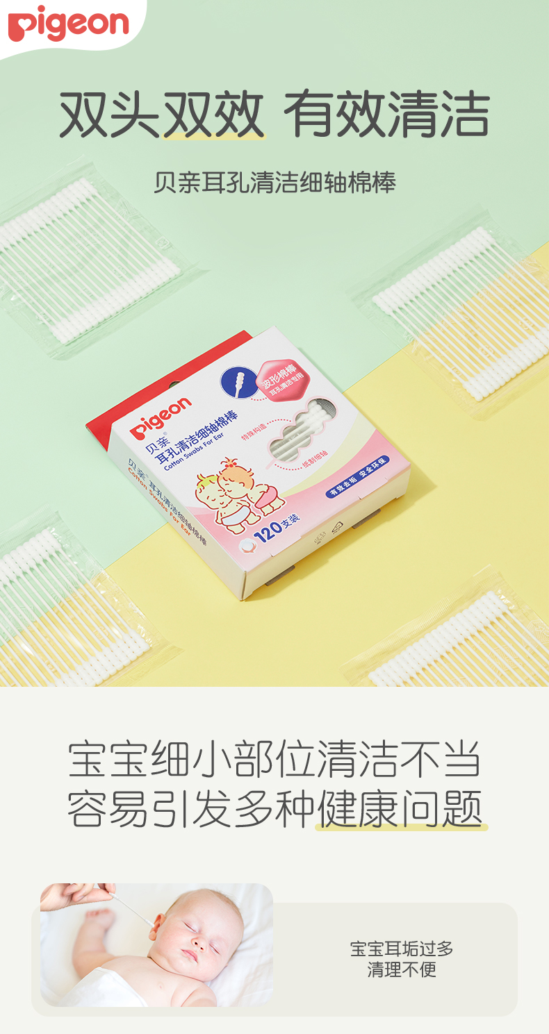【官方自营】PIGEON/贝亲婴儿童耳孔清洁棉棒120支装