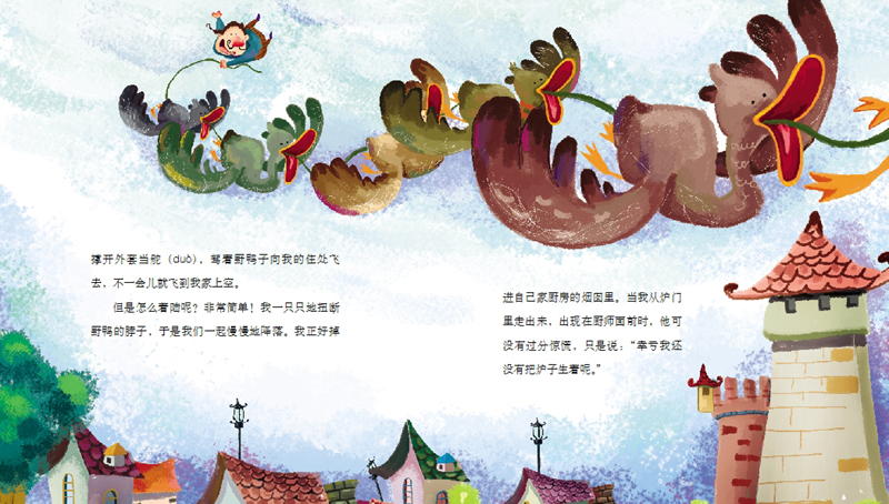 《吹牛大王历险记》:由18世纪德国作家拉斯伯和毕尔格共同创作。童话的主人公敏豪生男爵确有其人。他出身贵族,曾是军人,在俄国服过役,和土耳其人打过仗,还酷爱打猎和旅行。他是个快乐的冒险家,也是个口若悬河的吹牛大王。童话以他的口吻讲了许多离奇古怪、闻所未闻的历险故事。比如他用眼睛冒出的火星打猎,用一根通条打到七只松鸡,骑着炮弹飞行,在鲸鱼肚子里跳舞,乘船去月球旅行……这些故事想象奇特,语言幽默风趣,让人捧腹开怀。