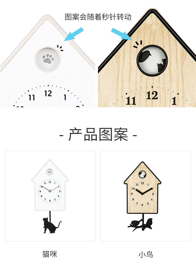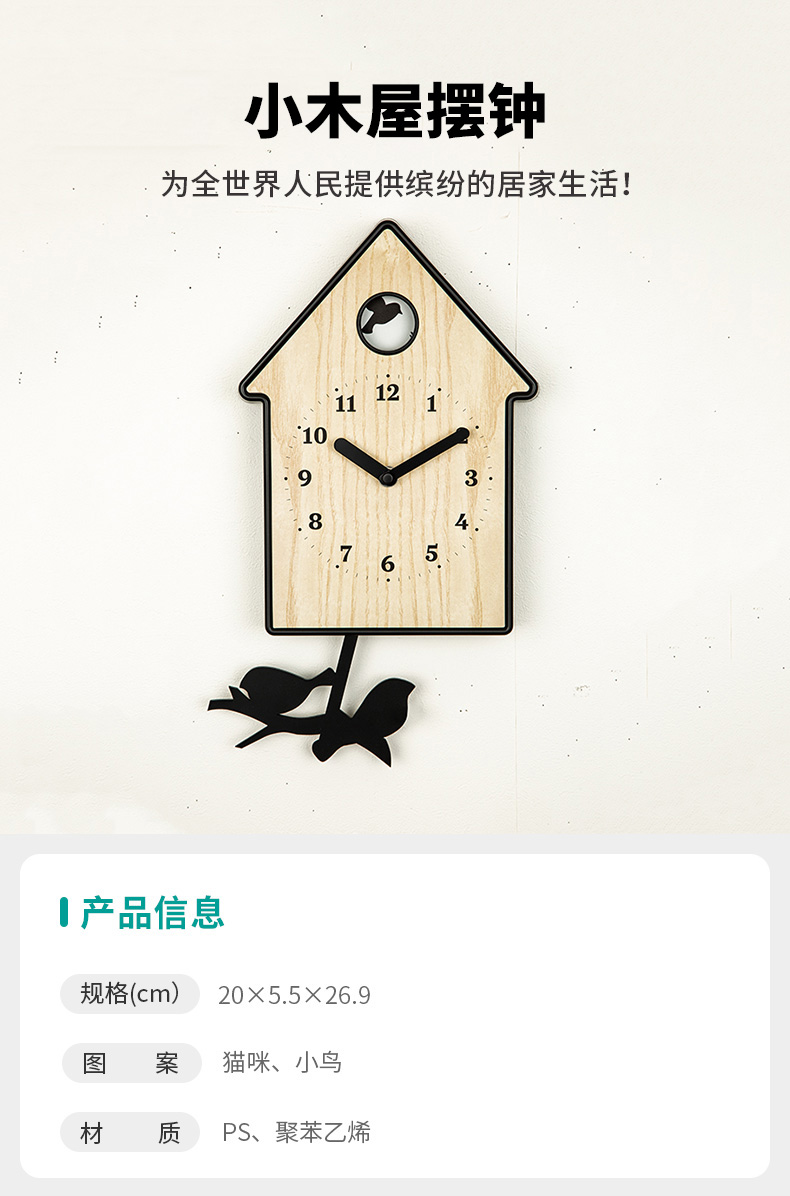 可爱木质装饰品 小木屋摆钟 猫咪 2027SW