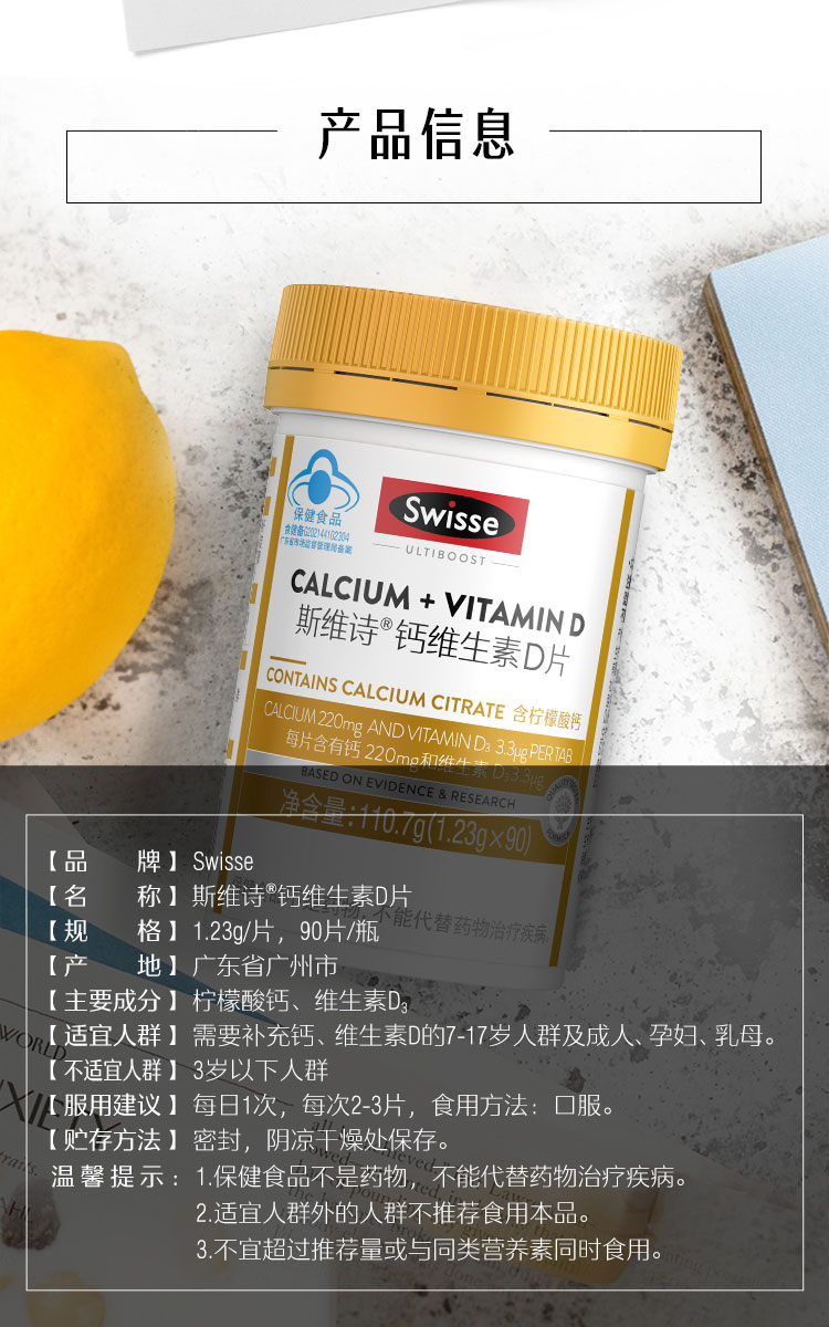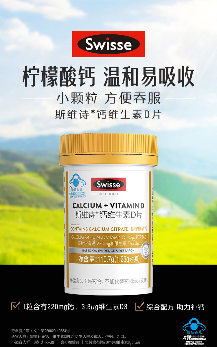 【79元选2件】Swisse斯维诗钙维生素D片(mini钙)90粒【有效期至26.10.12】