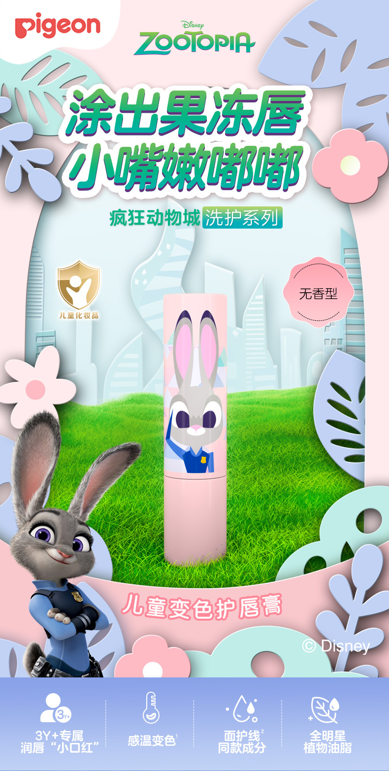 【官方自营】奚梦瑶推荐!PIGEON/贝亲迪士尼疯狂动物城3岁+儿童变色婴儿护唇膏安全提色无香型3.8g
