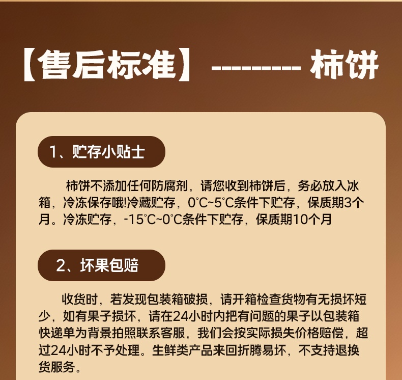 柿饼收到会有个别化霜的情况,这属于正常现象,尤其是南方温度高的地区。所以建议您收到货之后,第一时间将其放冰箱冷冻!待柿饼回霜,口感更好。